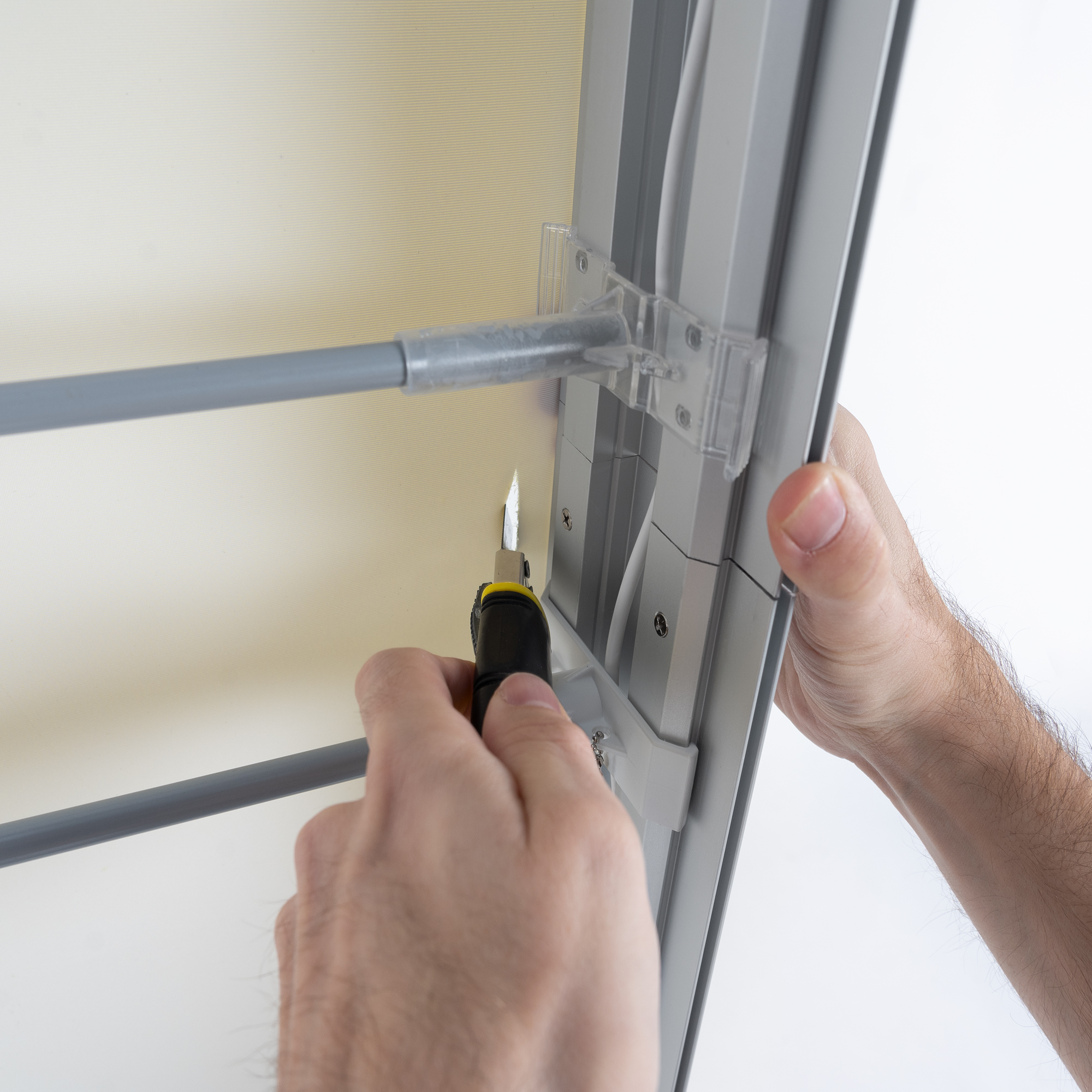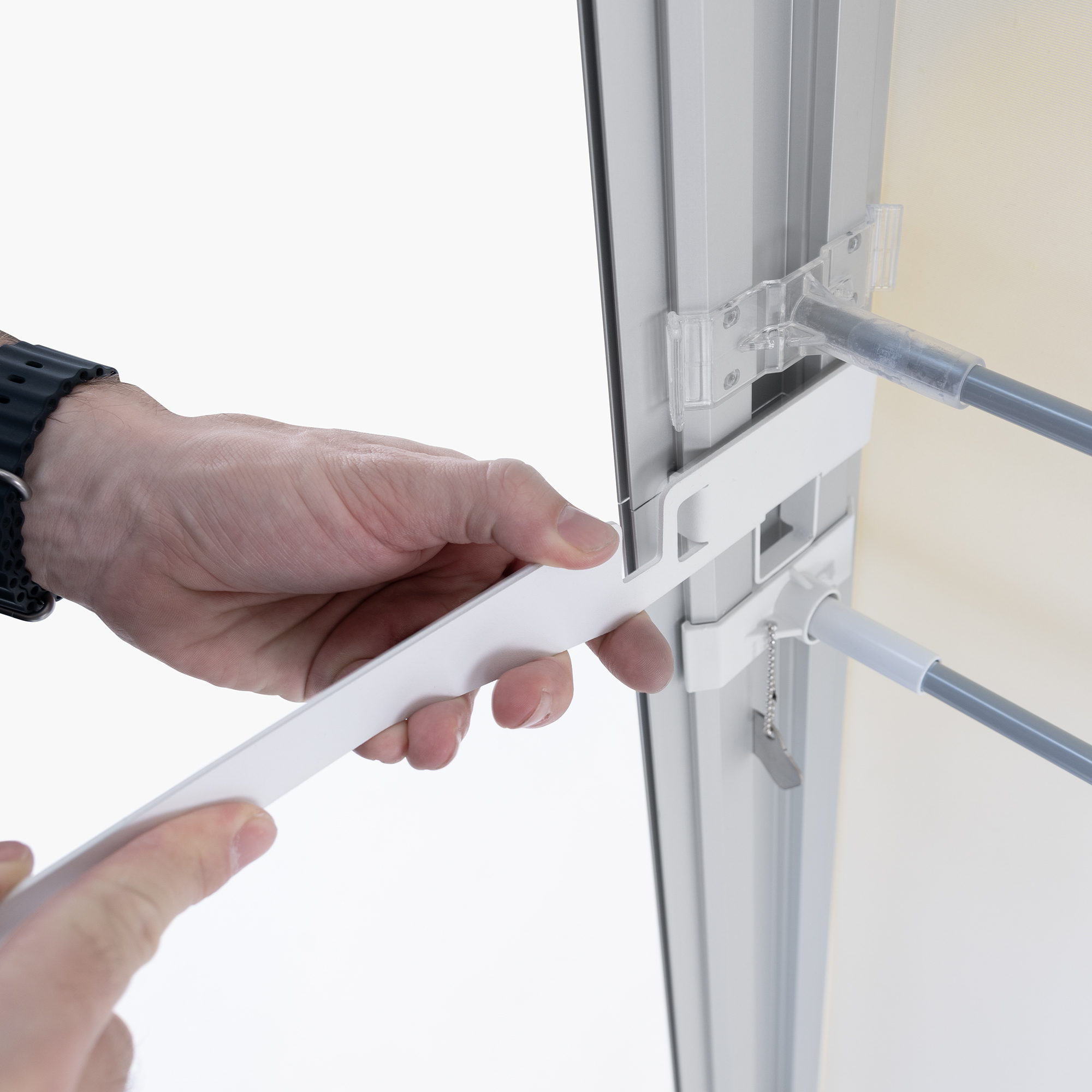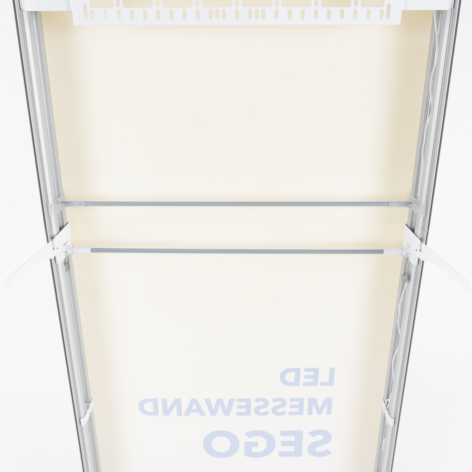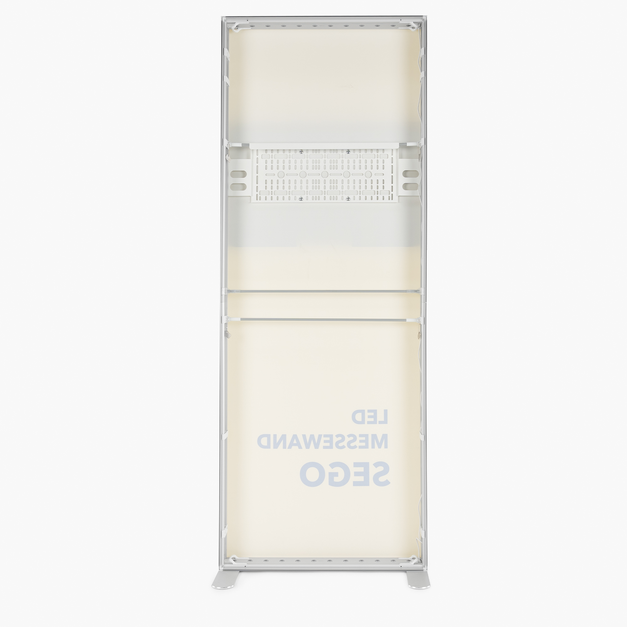 Das funktionale Zubehör für die modulare Architektur des LED Highlight Sego Messesystems lässt sich ganz einfach mit Messewänden kombinieren..