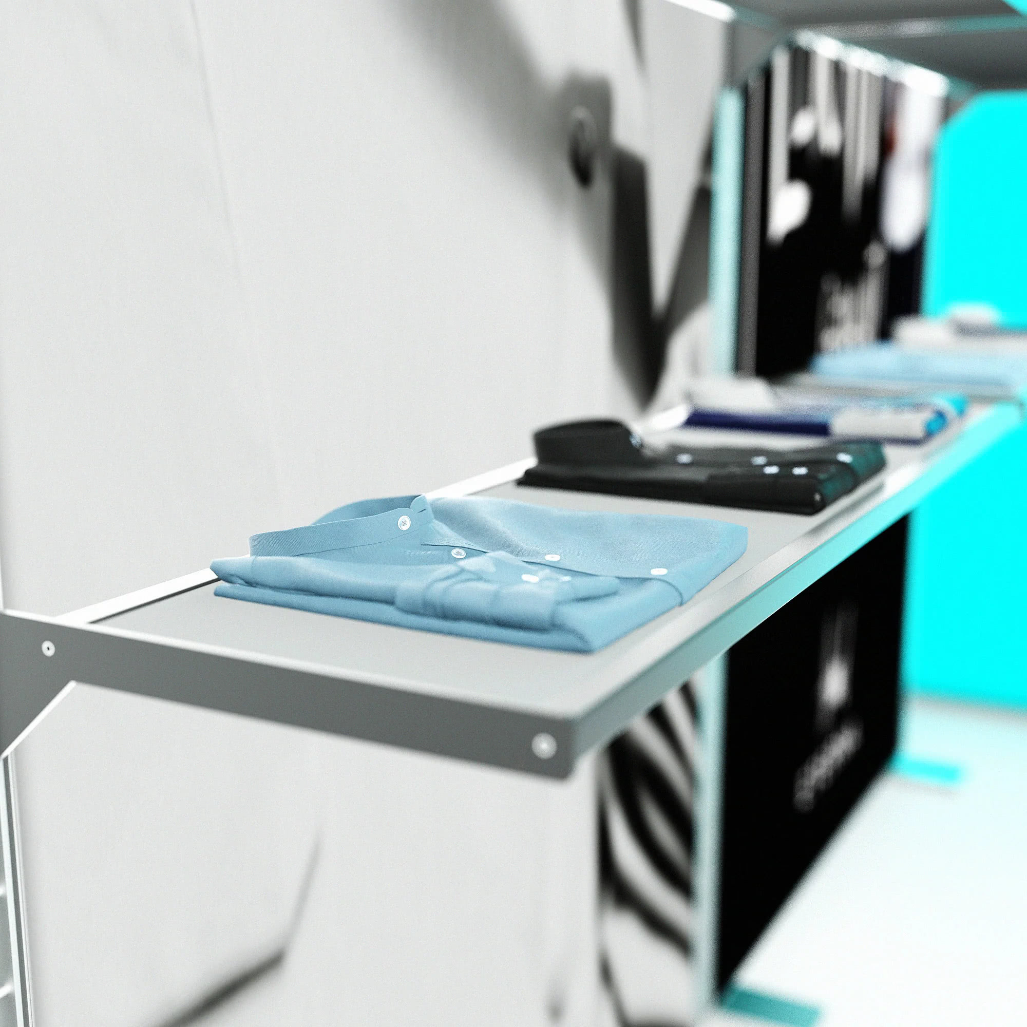 Das funktionale Zubehör für die modulare Architektur des LED One Messesystems lässt sich ganz einfach mit Messewänden kombinieren. Die Basis für die Anbringung vieler Zubehör-Elemente sind vertikal montierte Schlitzschienen.