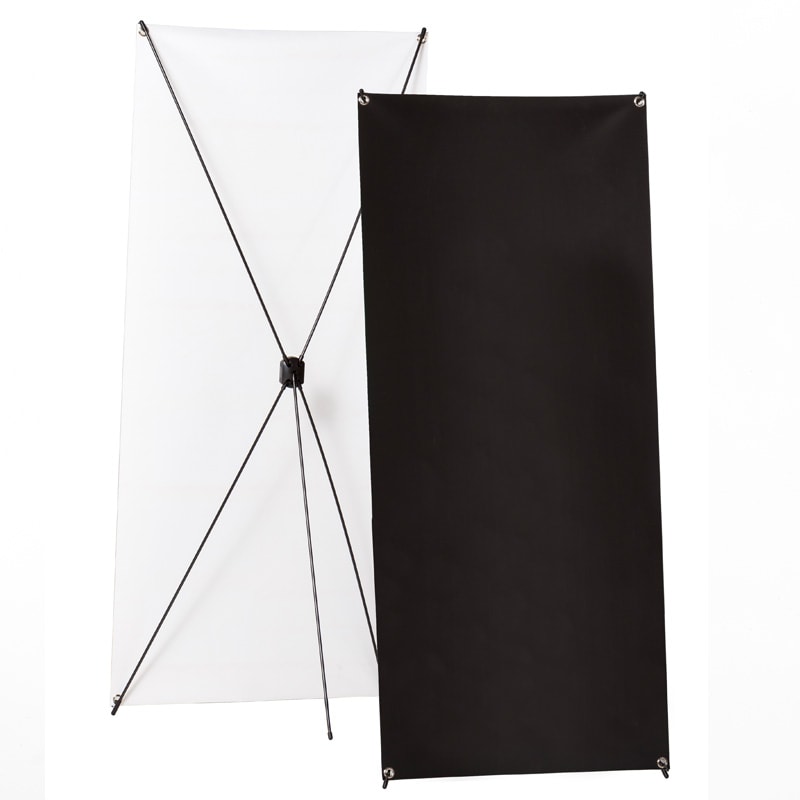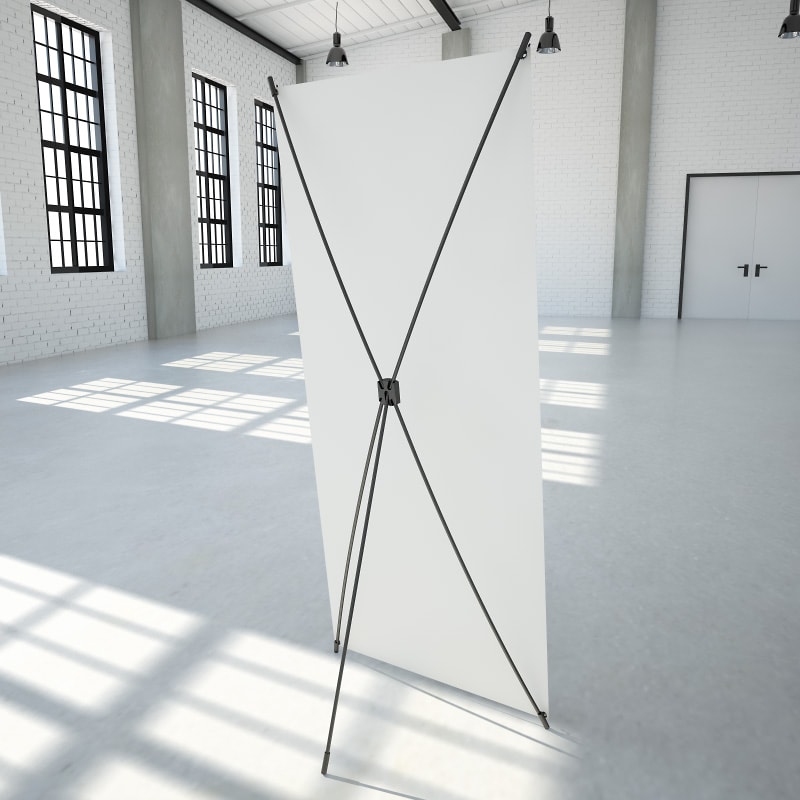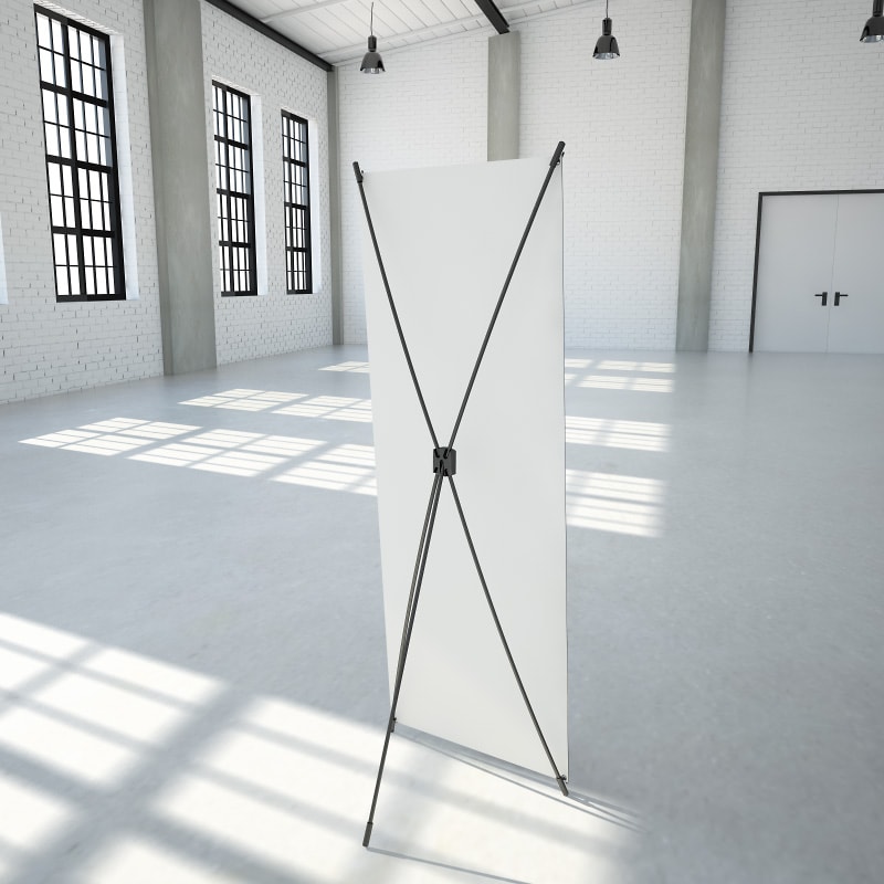 Hochwertiges Bannerdisplay mit X-Fuß, optimal für große Auflagen und einen schnellen Motivwechsel!