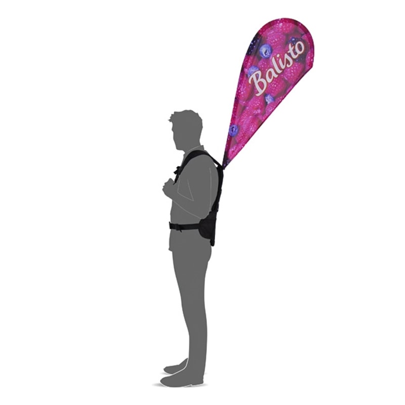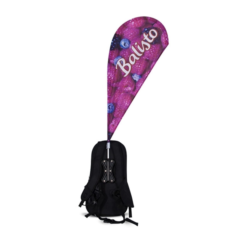 Der Promo Rucksack besteht aus, dem Rucksack sowie der bedruckten Fahne und Gestänge.