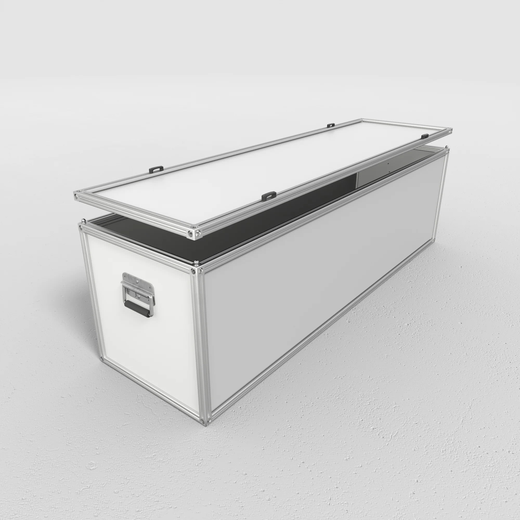 Für einen einfachen, flexiblen und kostengünstigen Transport Ihrer LED One Messewände: Der Deckel kann optional bedruckt werden.