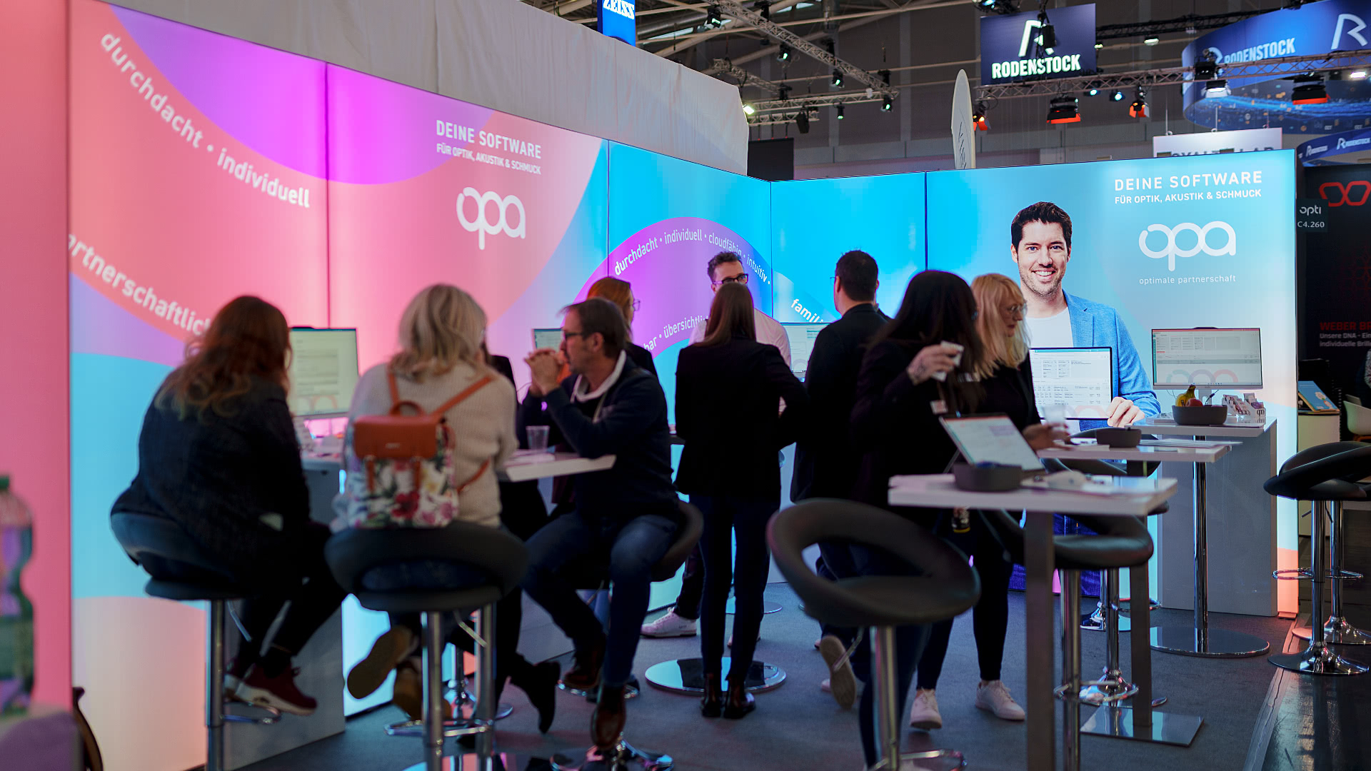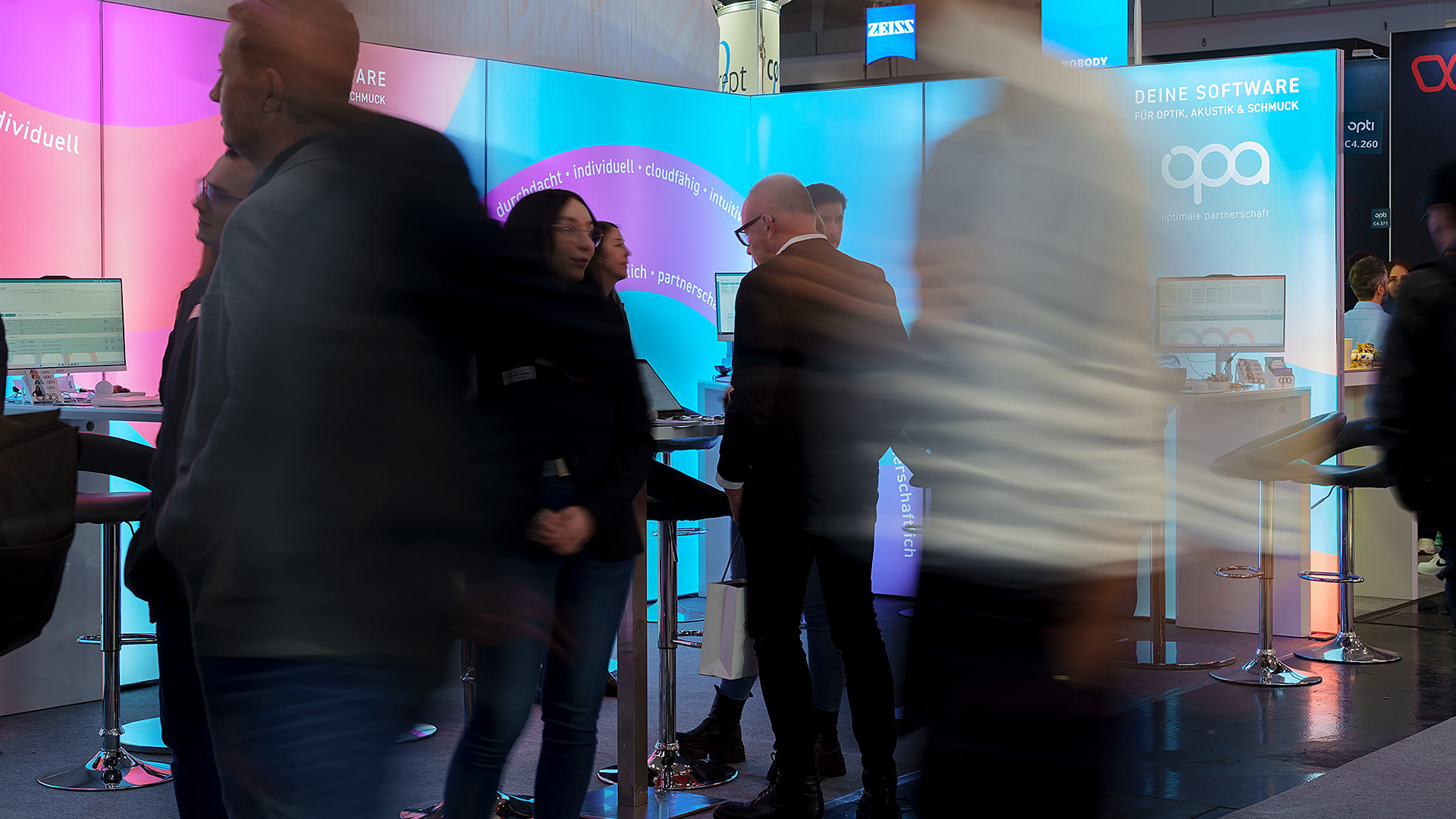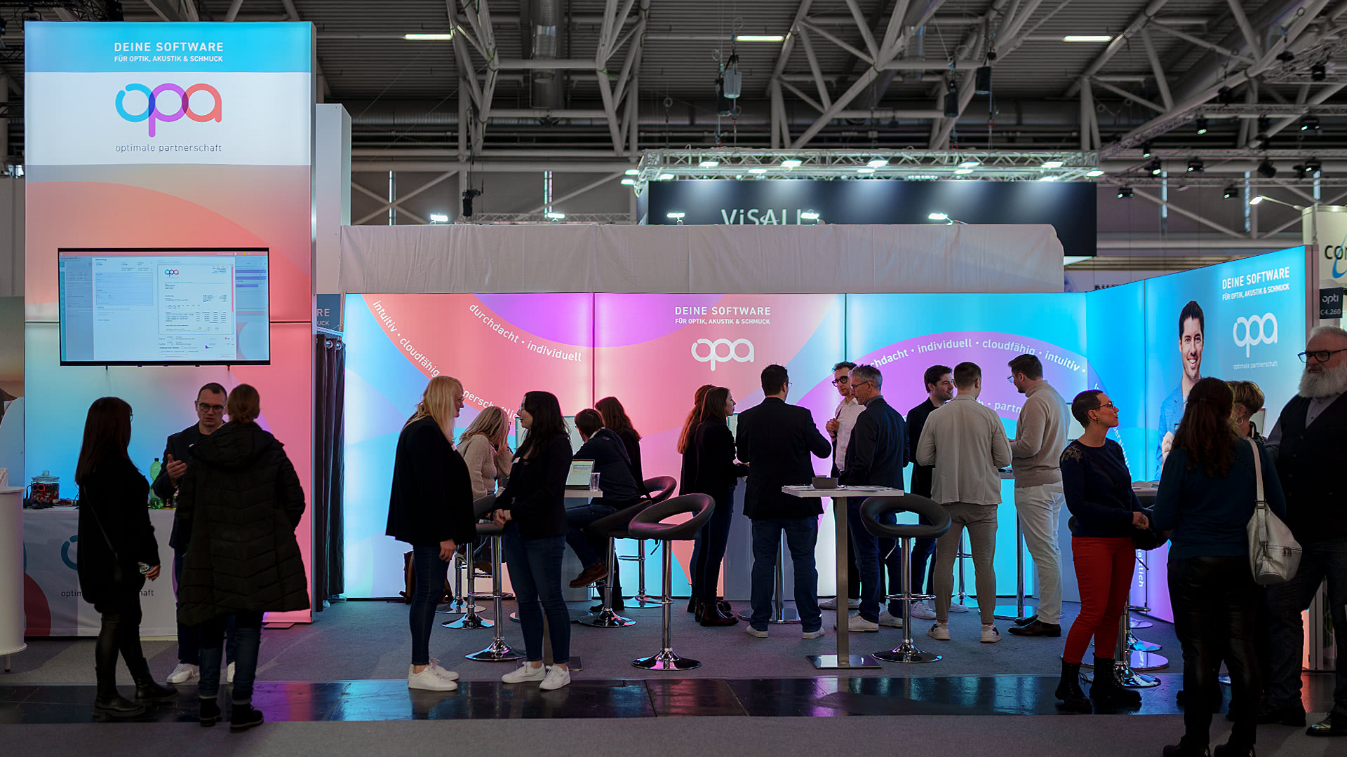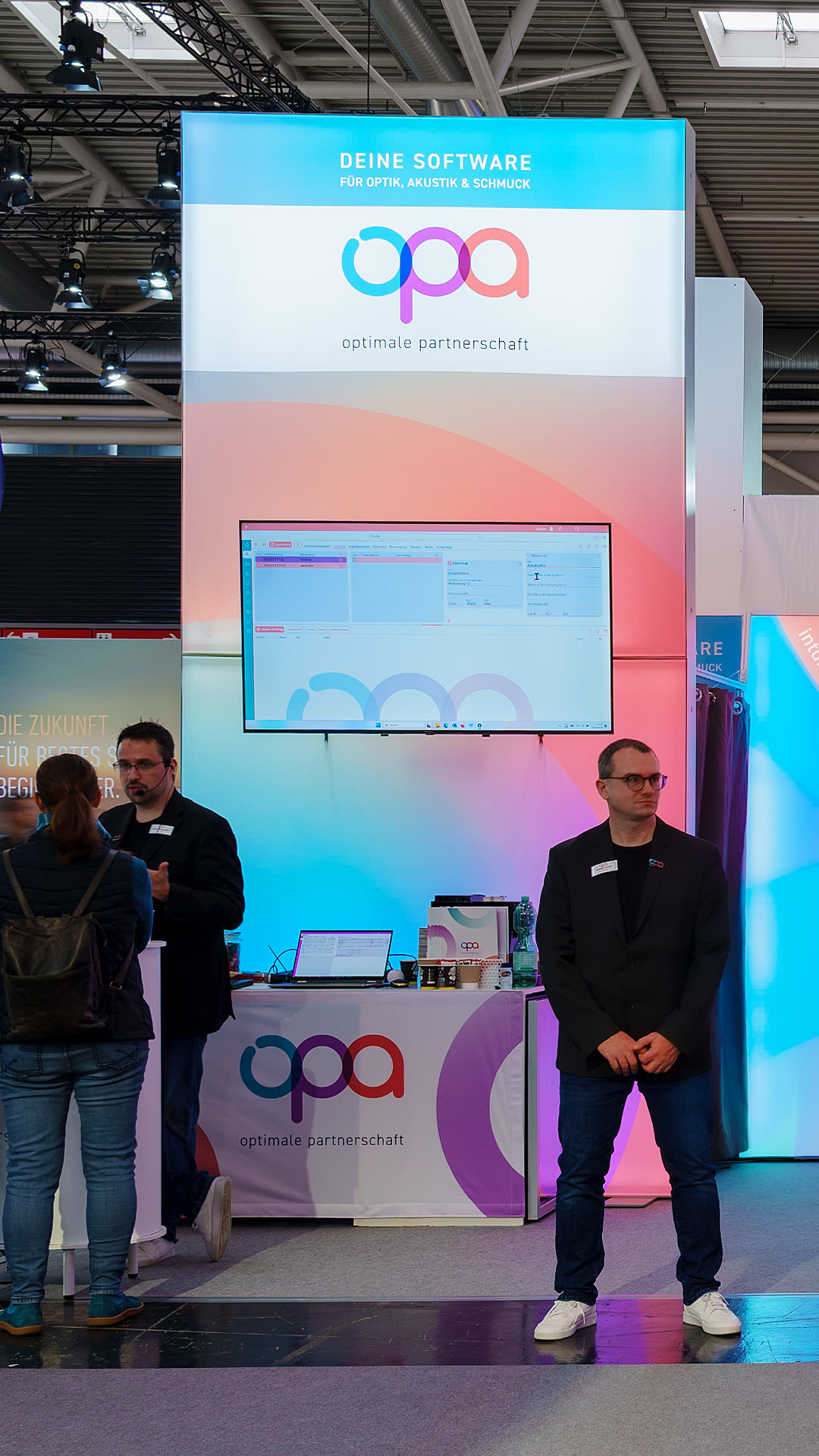 Die EDV-Optik-Partner GmbH aus Goslar nutzte diese Plattform, um ihre aktuelle Softwaregeneration OPA3 einem breiten Fachpublikum zu präsentieren. Unterstützt wurde der Auftritt durch einen modularen LED-Messestand, den wir gemeinsam mit dem Unternehmen umgesetzt haben – er überzeugte durch klares Design und eine funktionale Umsetzung, die gezielt auf den Messeeinsatz abgestimmt war.