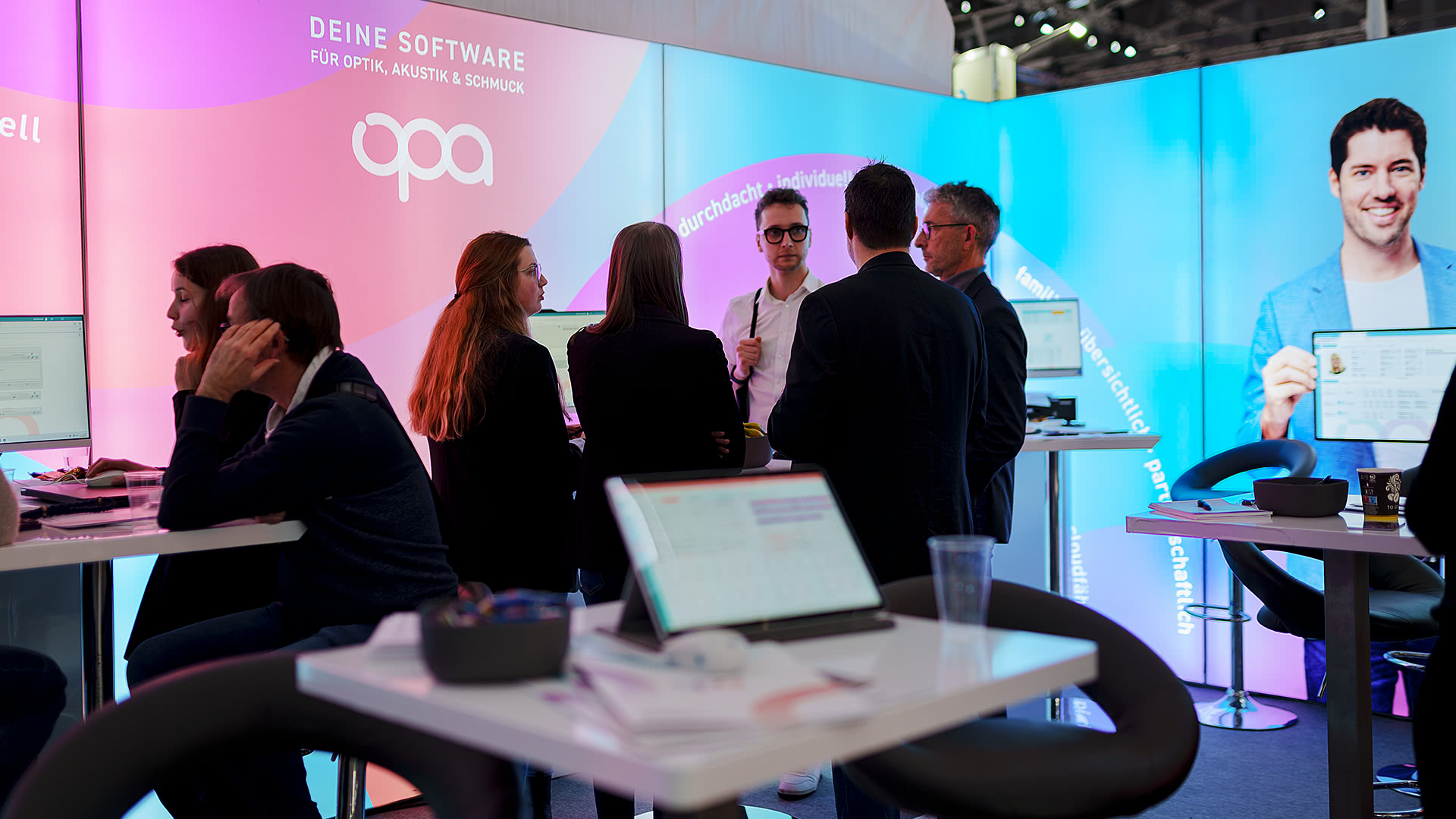 Besucher hatten die Möglichkeit, OPA3 über integrierte Touchscreens direkt am Stand zu erleben. Live-Demonstrationen zeigten die Benutzerfreundlichkeit und die vielfältigen Funktionen der Software – von der Terminbuchung bis zur Cloudanbindung.