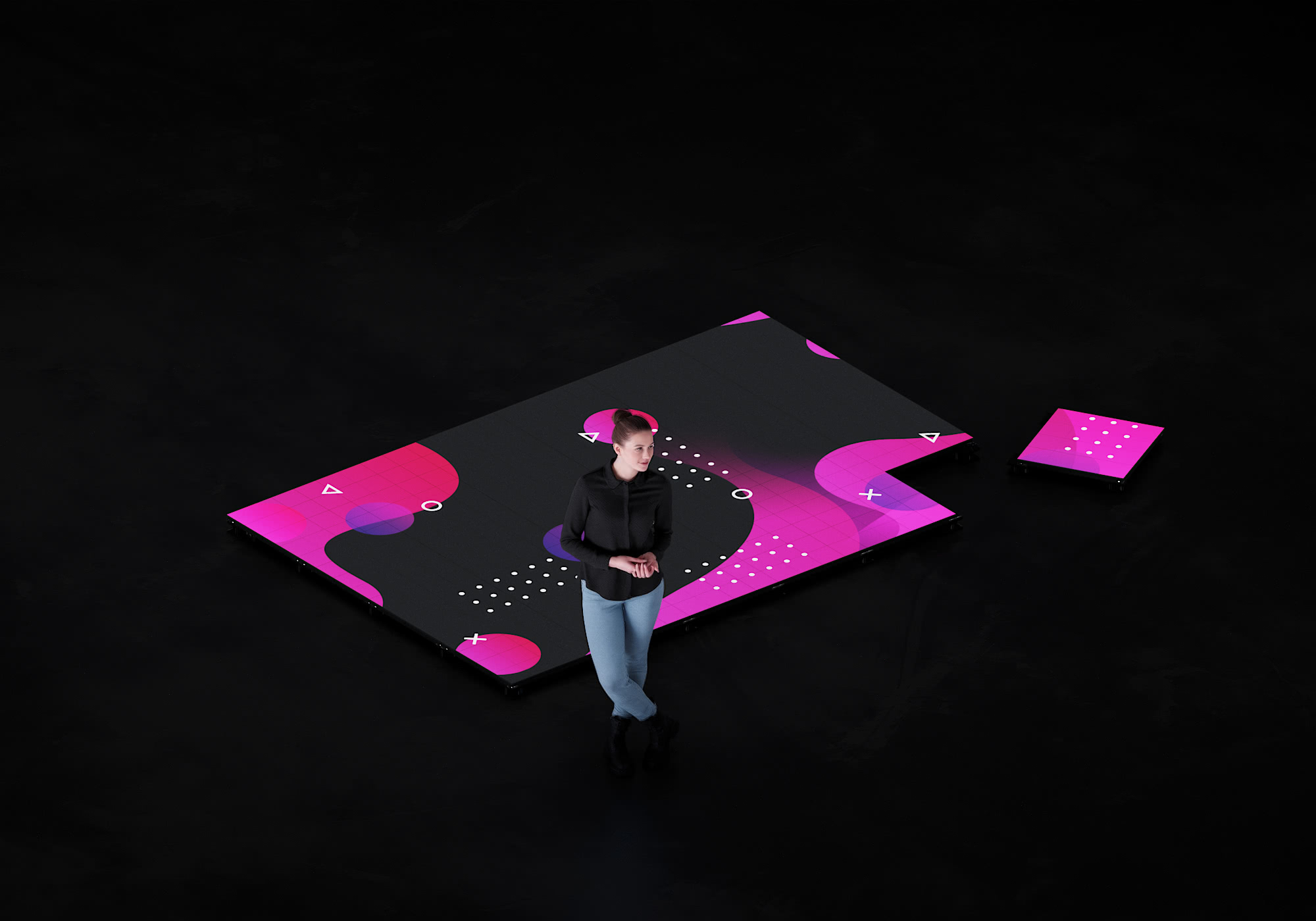 Die Videomodule sind in unterschiedlichen Größen bzw. Modul-Varianten mietbar und lassen sich präzise in jede Standfläche integrieren. Ob freistehend, in Rückwände eingebettet oder als Bodenelement, du entscheidest, wie du die digitalen Module in deinen Standaufbau einbindest. Diese hohe Anpassungsfähigkeit macht sie zu einem starken Bestandteil moderner Messesysteme, ganz gleich ob bei kompakten Ständen oder großen Erlebnisflächen.