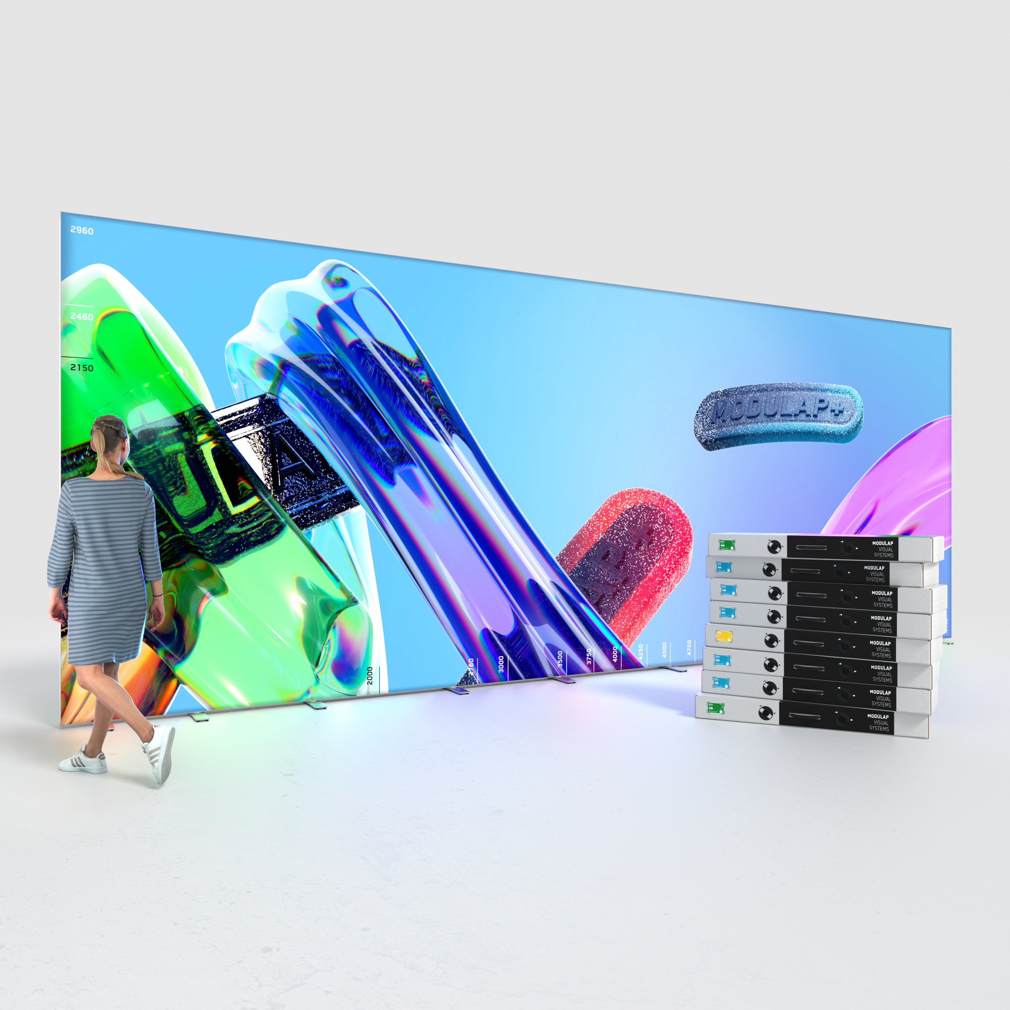 Die AP_120 Lightbox basiert auf einem modularen System, das eine stufenweise Erweiterung oder Verkleinerung der Wandbreite in 100-cm-Schritten ermöglicht. Die maximale Gesamtbreite beträgt bis zu 8000 cm.