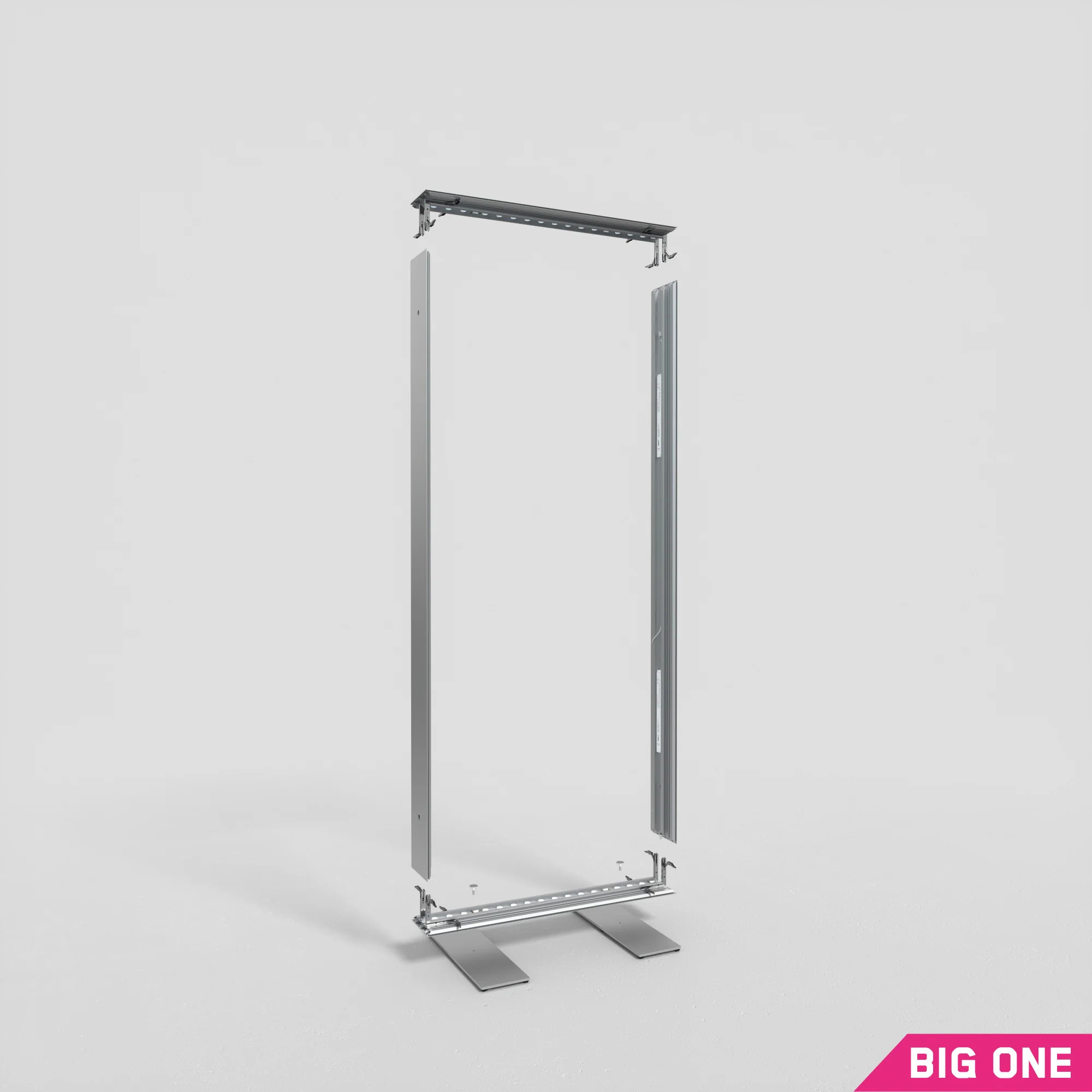 Die Systeme sind ideal für größere Messebau-Konstruktionen. Die Profile werden ungeteilt und schlank verpackt in einer robusten, wiederverwendbaren Transporthülse geliefert. Die XXL-Leuchtkästen der One BIG Baureihe sind besonders groß und beidseitig beleuchtet. Nutzen Sie diese freistehend als Stele, als Messewand oder als Teil eines größeren Messestands. Sie erhalten diese Lightboxes in den Systemhöhen 200, 215, 246 und 296 cm und in unterschiedlichen Breiten. Auch in den großen Formaten sind die Lightboxes komplett werkzeuglos und schnell aufbaubar. Alle Leuchtkästen des One BIG lassen sich durch innenliegende Schraubverbinder mit Kabeldurchführung verbinden – so bleibt die Verkabelung auch bei beidseitig bespielten Lightboxes von außen unsichtbar.
