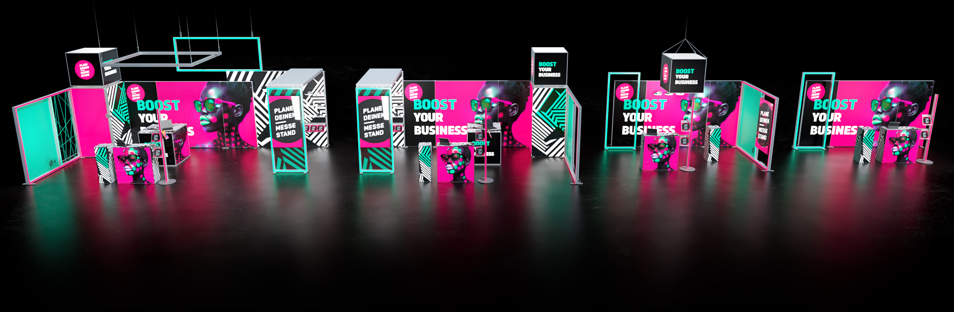 - 3D-Planung und Visualisierung: Wir bieten dir eine kostenlose 3D-Planung und Visualisierung deiner Messestände und Videowalls an. So siehst du direkt und schon vor dem Kauf, wie dein Messestand oder deine Videowall aussehen wird.