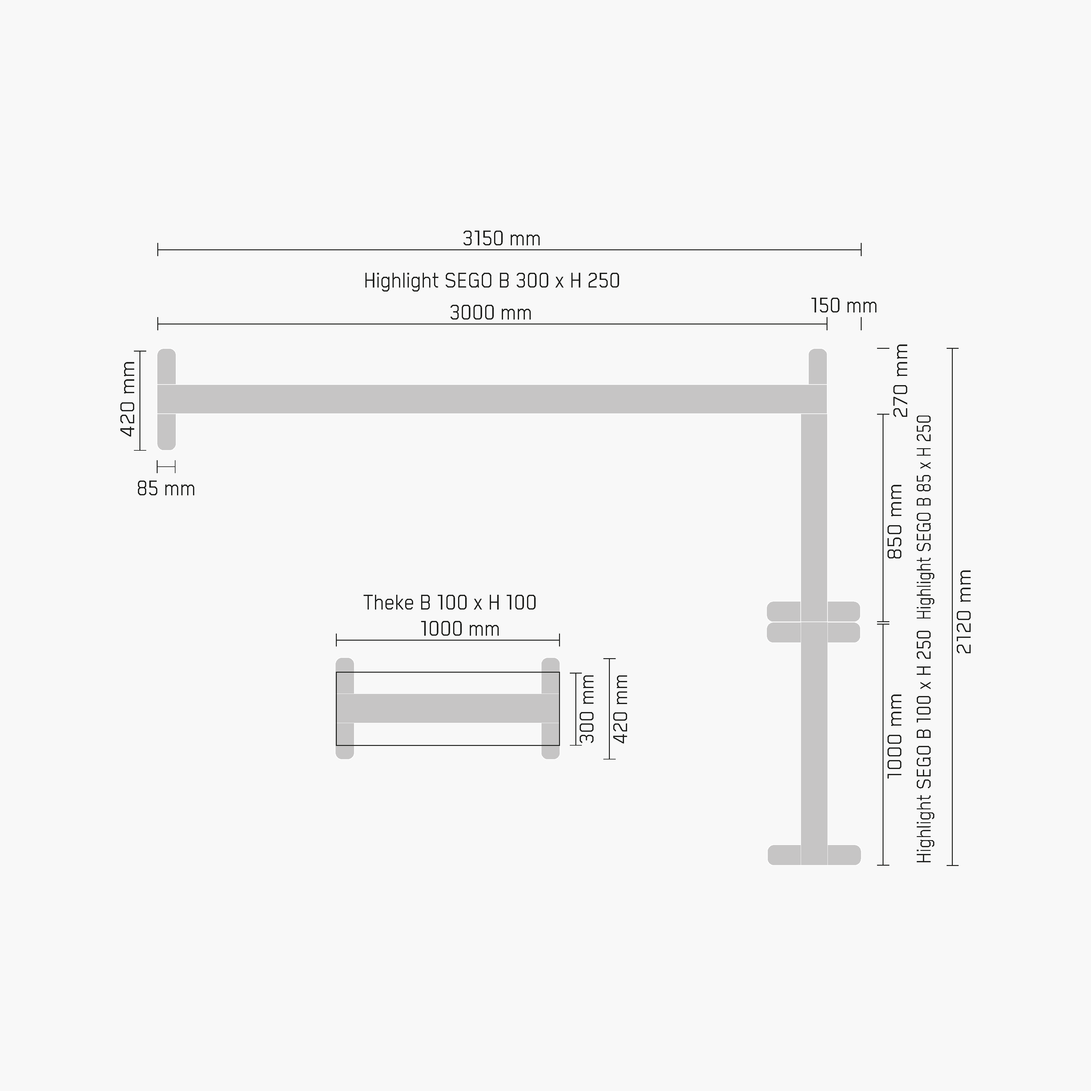 1x Ablage B 100 cm passend für LED Messewand Highlight Sego