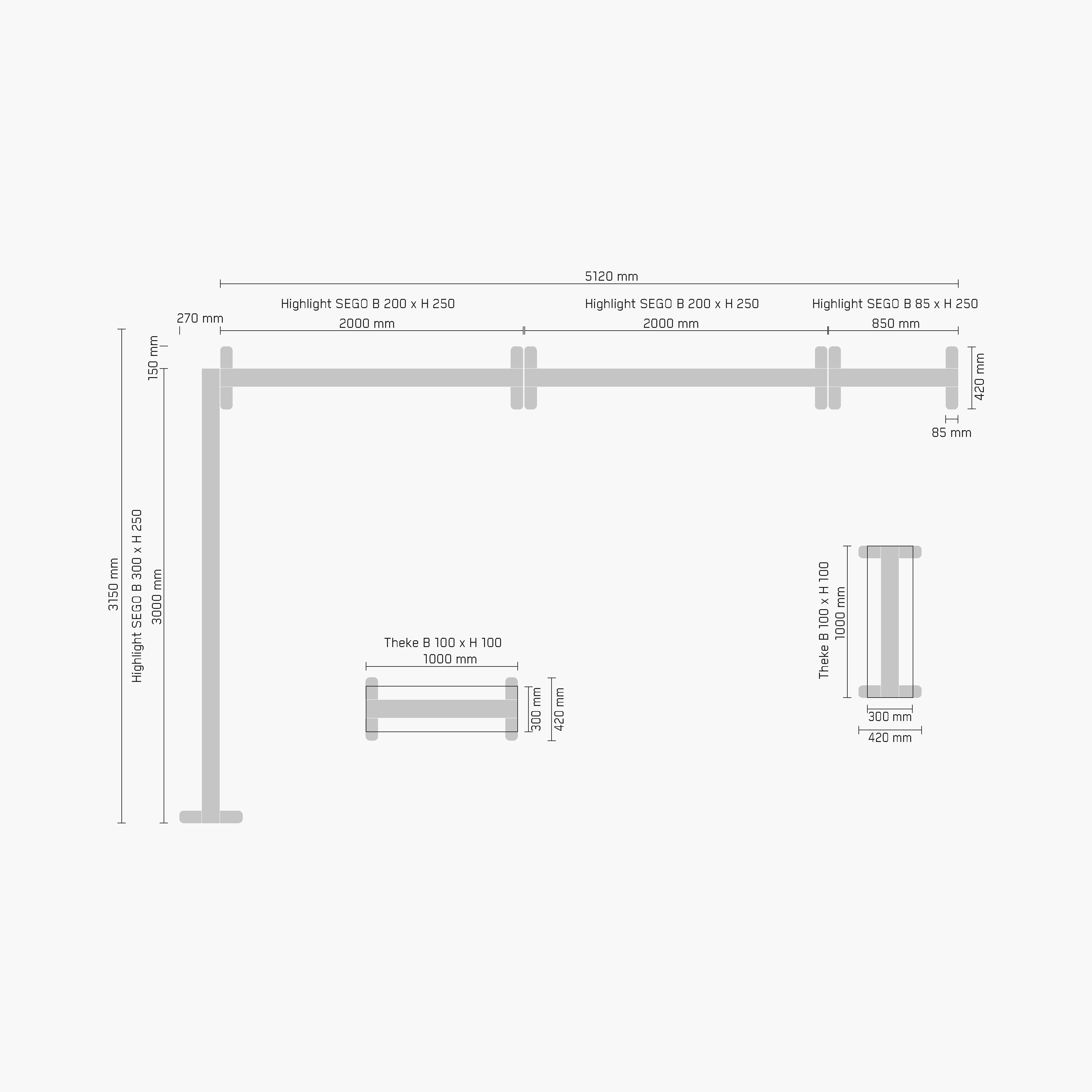 4x LED Messewand Highlight SEGO – B 85 x H 250 cm
