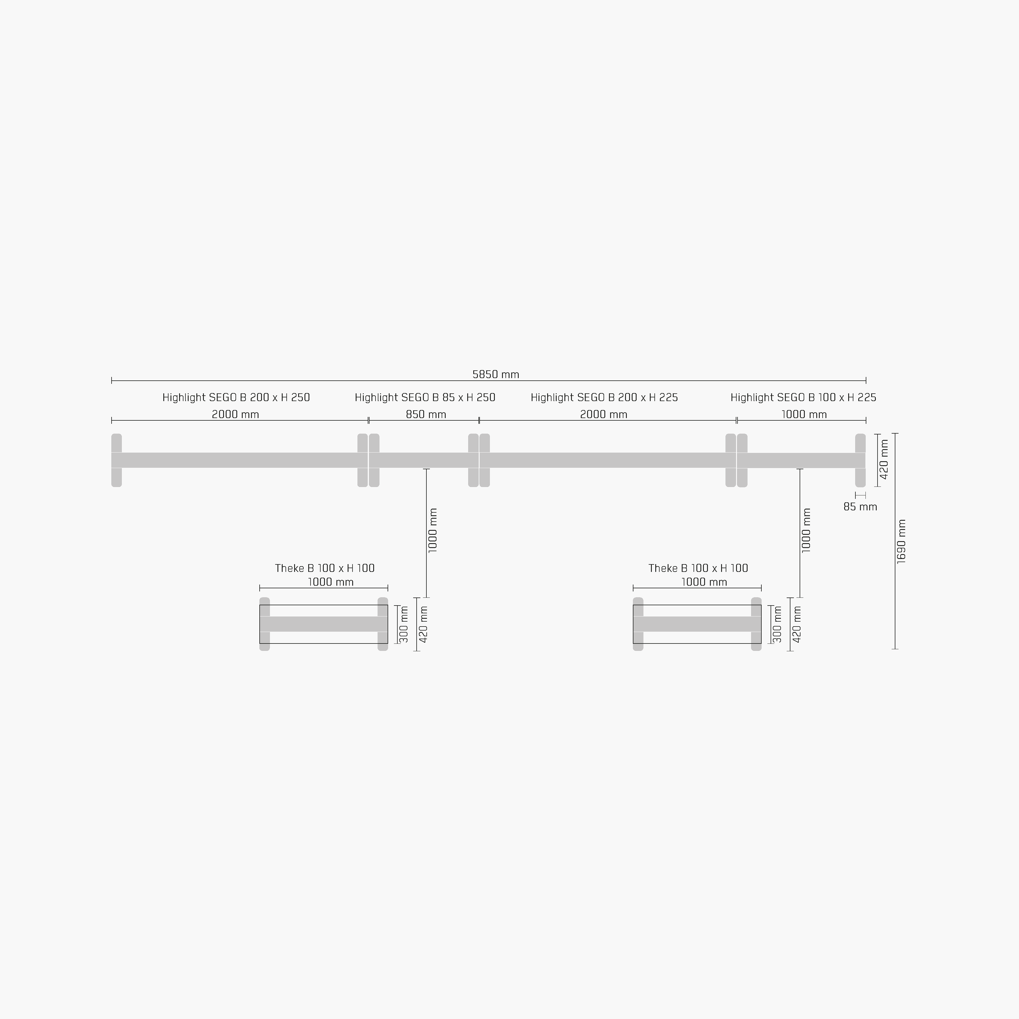 2x Ablage B 100 cm passend für LED Messewand Highlight Sego