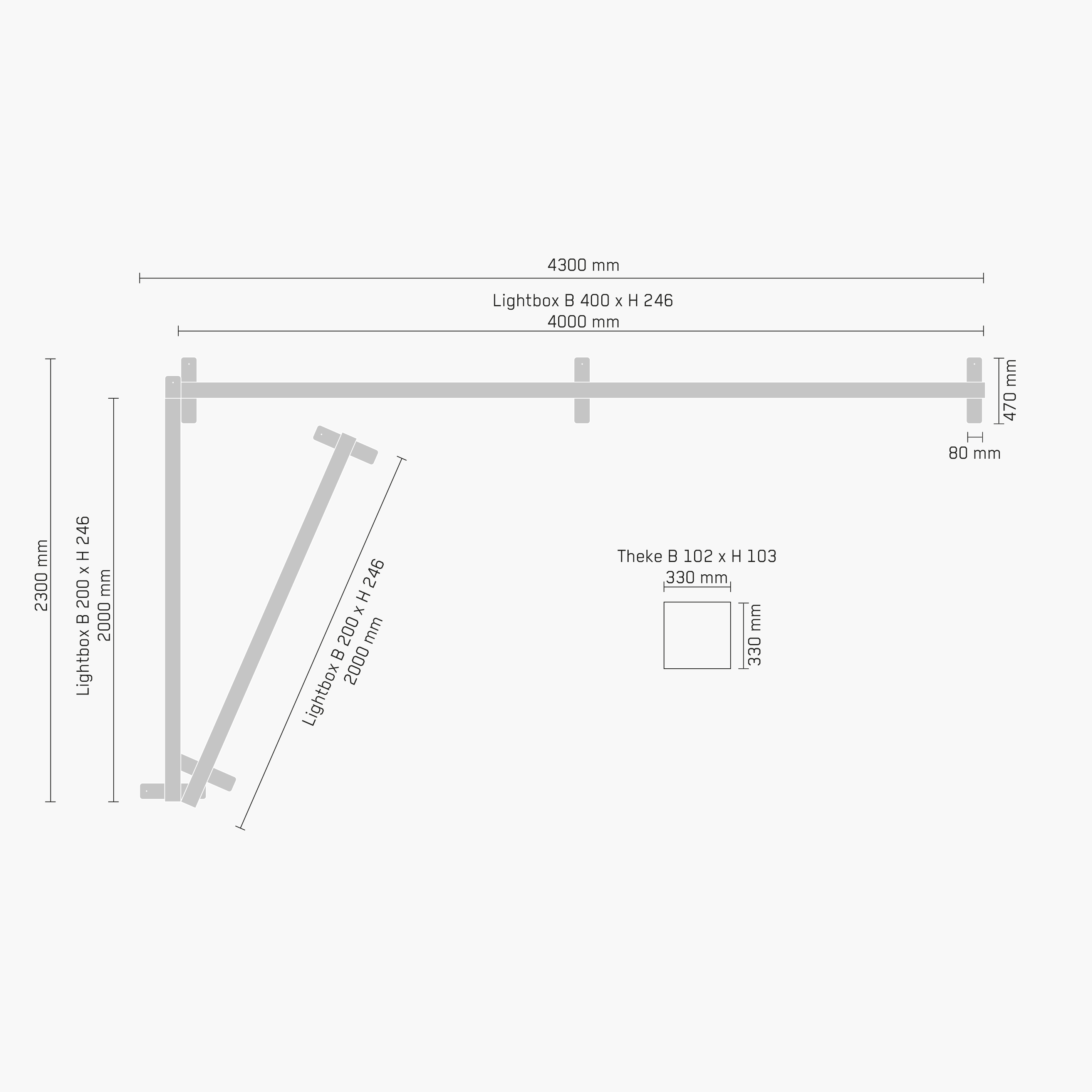 Alle drei verfügbaren Bauhöhen 215 cm, 246 cm und 296 cm sind von Beginn an Bestandteil jeder AP_120 Lightbox. Zusätzliche Höhenerweiterungen müssen nicht separat nachgekauft werden.