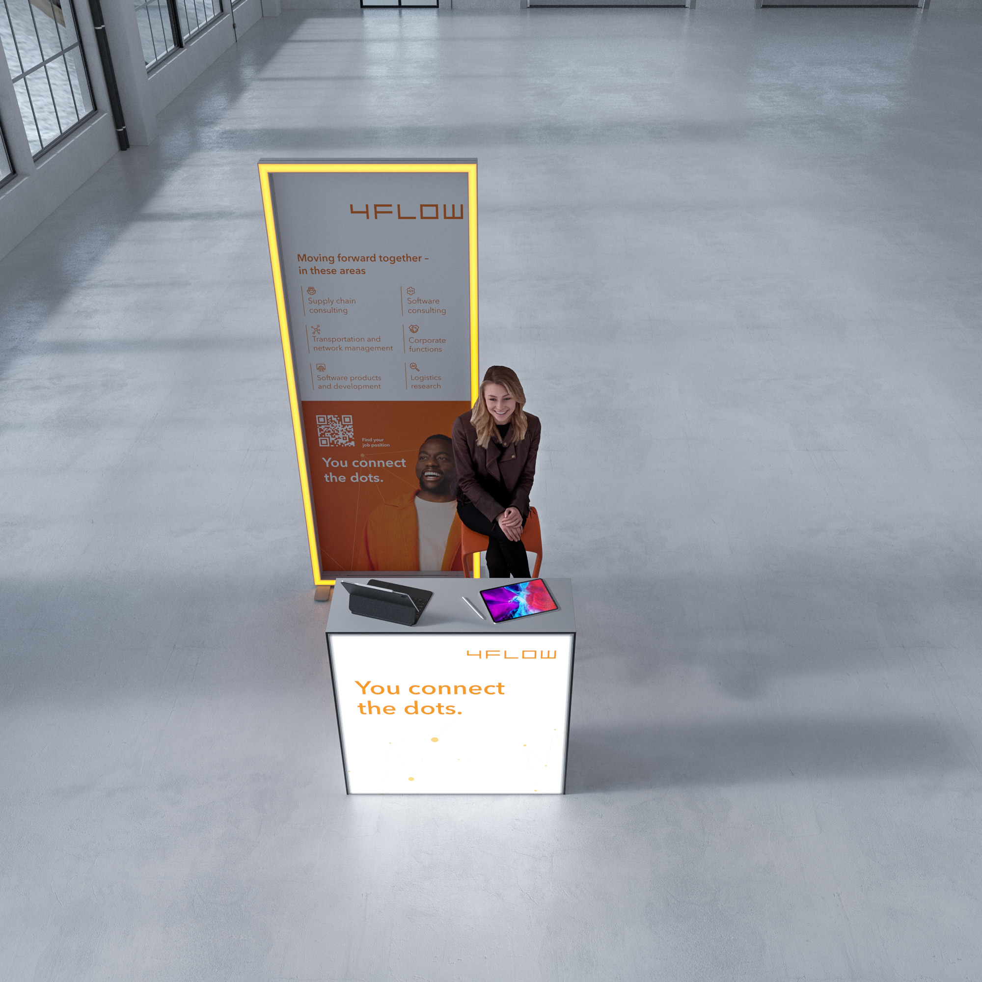 Wir empfehlen für den Messestand Set Jil 2 Transporttrolleys (B 130 x H 25 x T 40cm), diese finden Sie unter Zubehör.