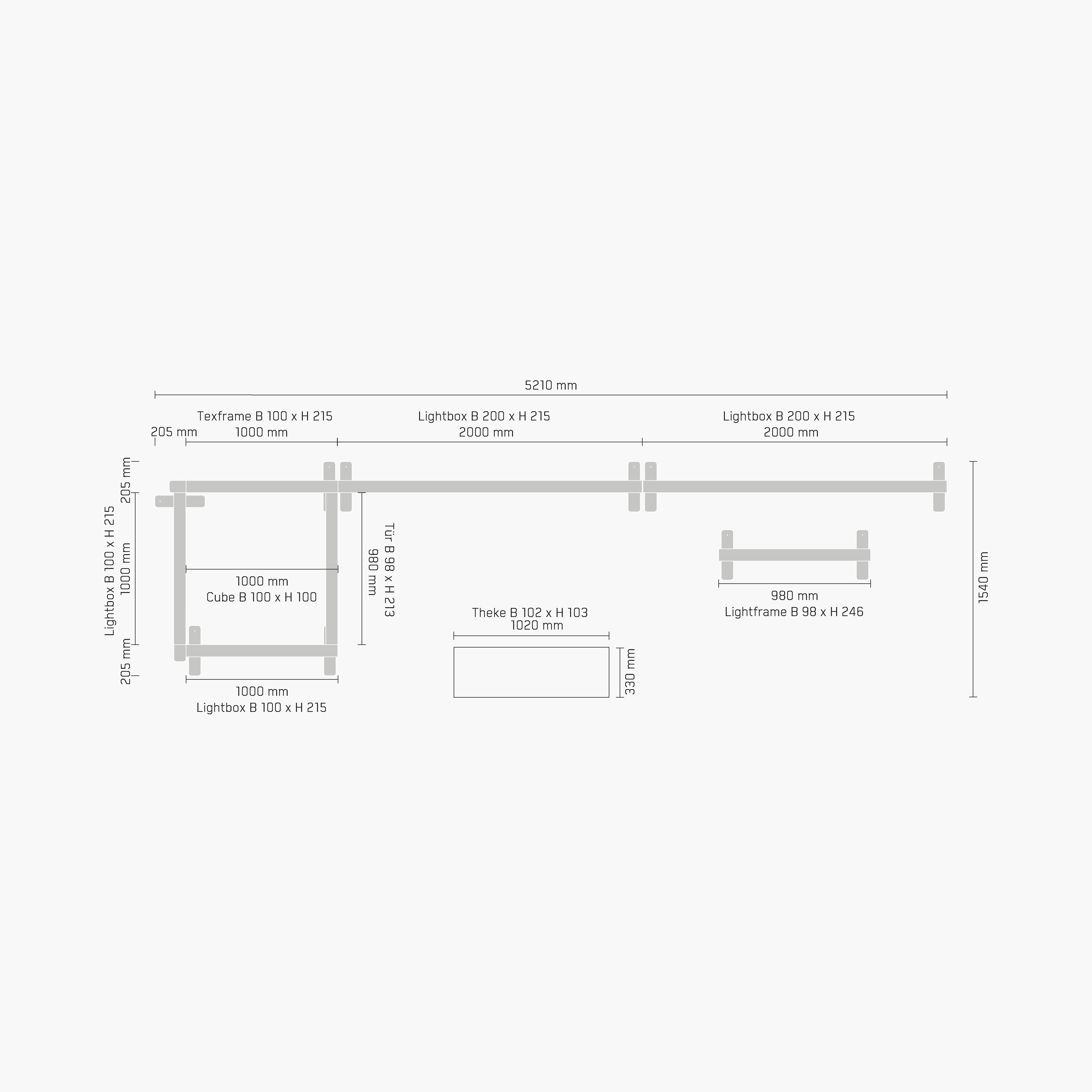 2x LED Lightbox - B 200 x H 215 cm - MODULAP ONE