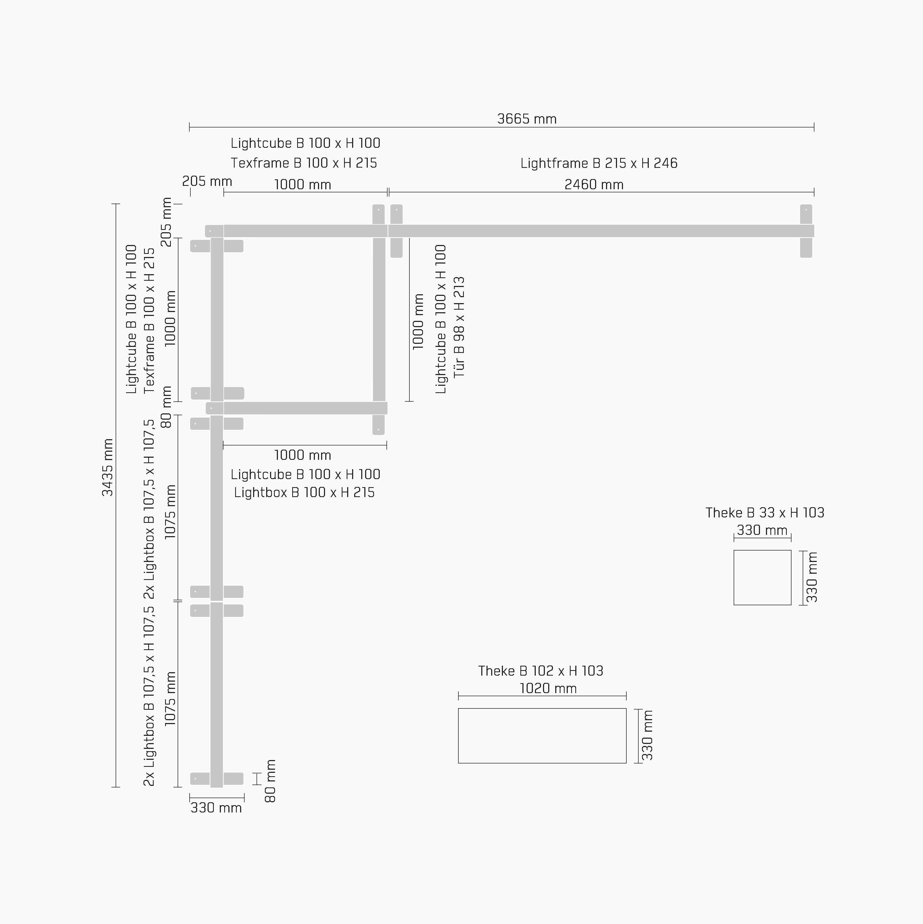 2x LED Lightbox Set - B 107,5 x H 107,5 - Systemhöhe 215 - MODULAP ONE