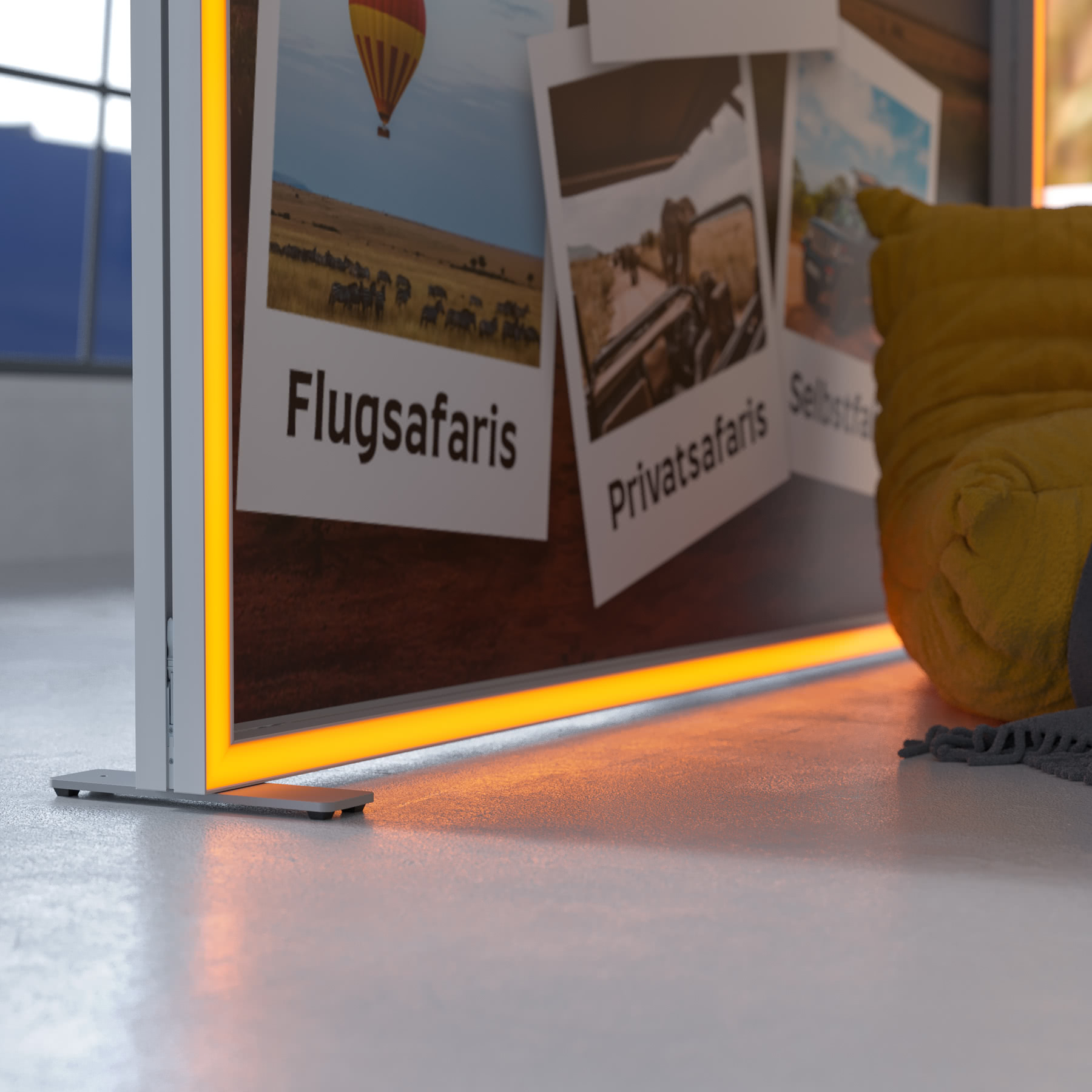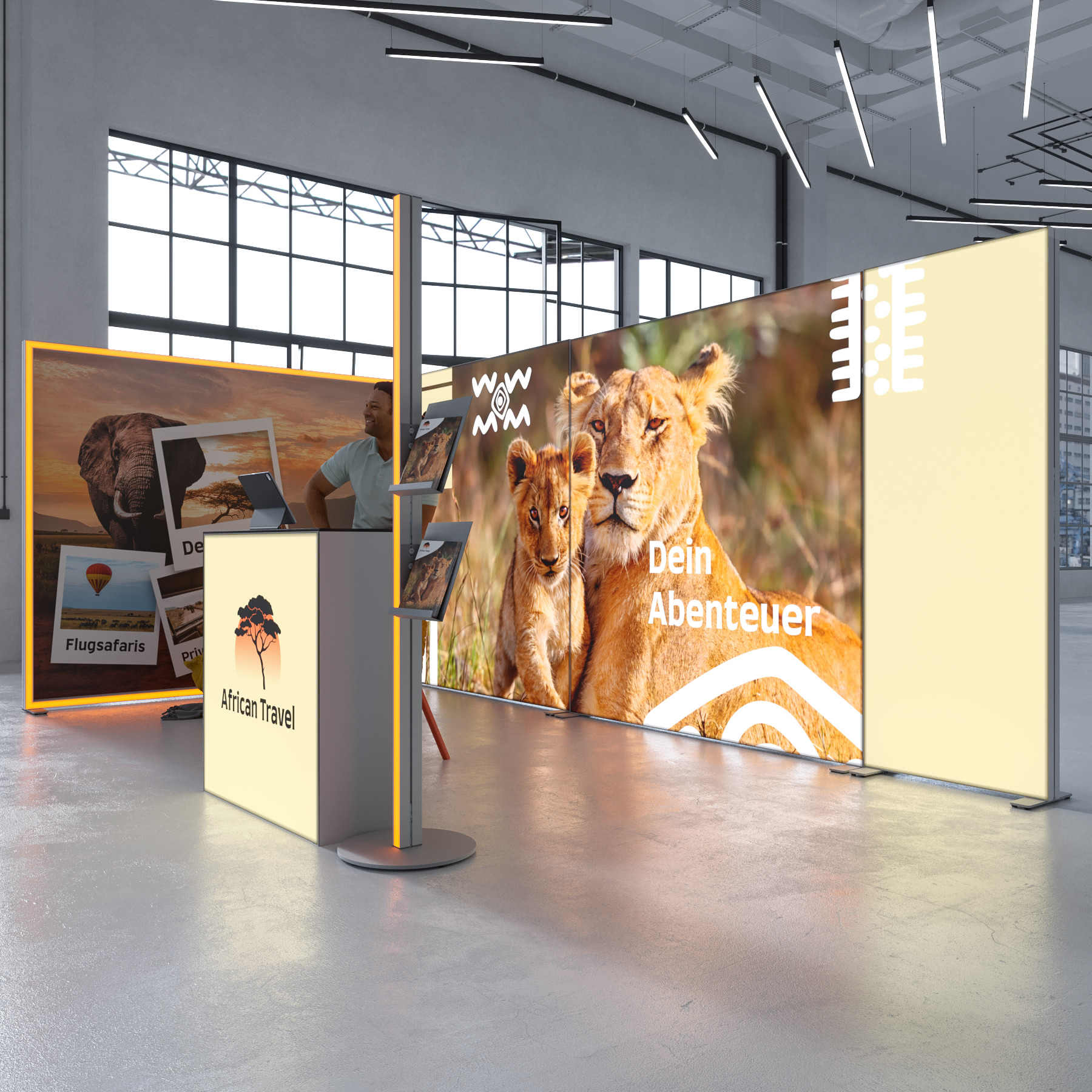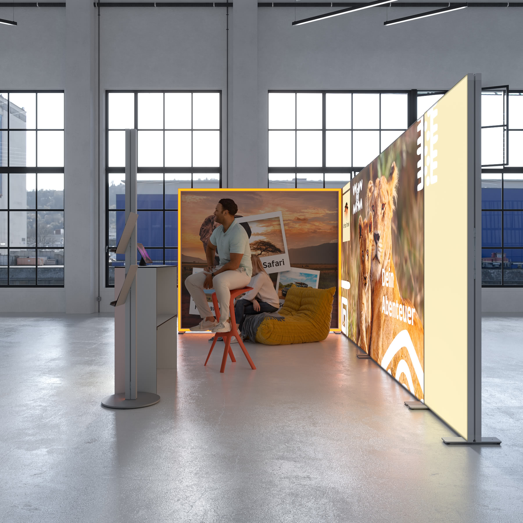 Die LED Messestände ONE bieten eine kostengünstige Alternative zum Individualbau. Optimal für Einsteiger und perfekt für Messe Promotion und Event. Sie bekommen zu einem günstigen Preis alles, was Sie von einem professionellen Leuchtmessestand erwarten können: Eine leistungsstarke Beleuchtung, brillante Drucke und ein einfaches Handling durch einen komplett werkzeugfreien Aufbau. Der Transport ist ebenfalls sehr einfach: Jede Leuchtwand, Leuchtkontur oder Leuchttheke lässt sich in nur einer Tasche verstauen.