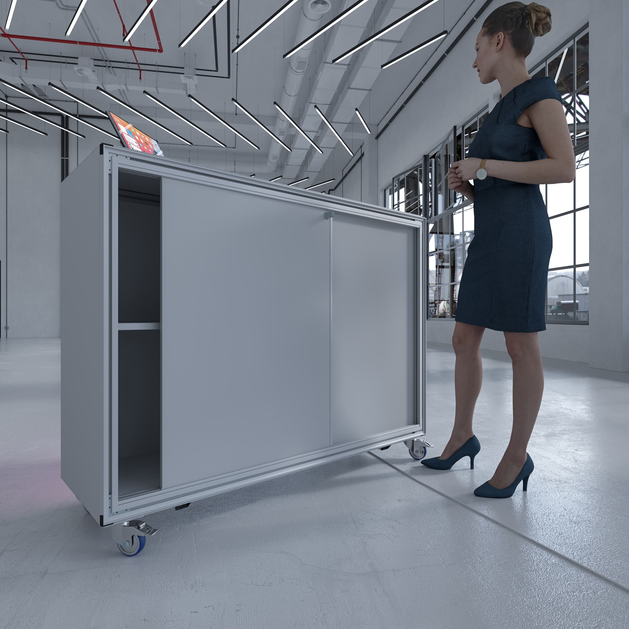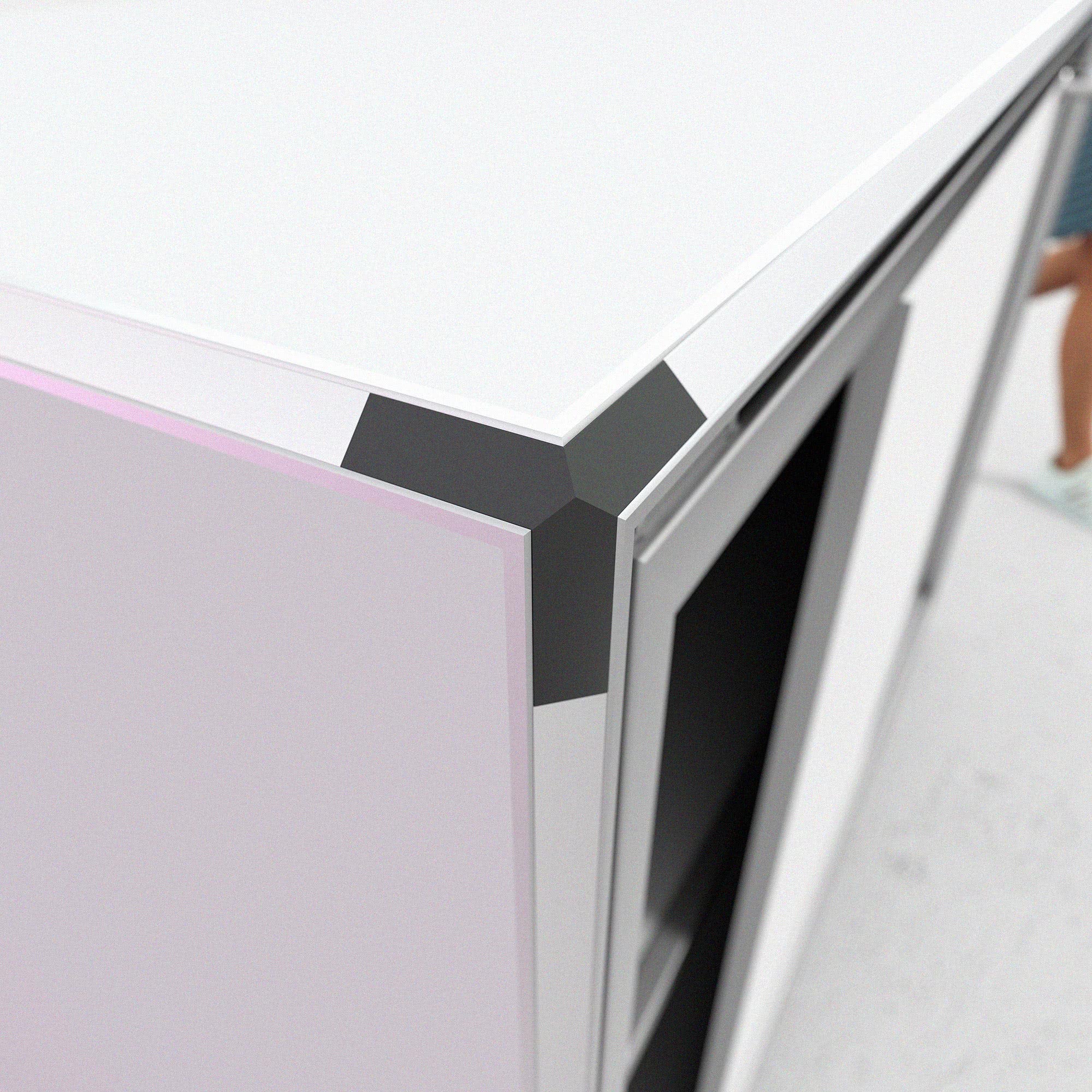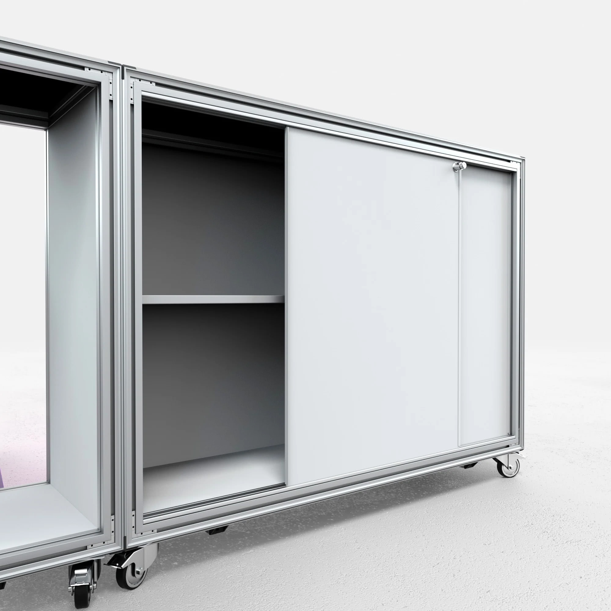 Mit diesem System bieten wir ein Case sowie einen robusten Counter. Optimal für Einsteiger und perfekt für Messe Promotion und Event. Das innovative LED One System bietet zahlreiche Möglichkeiten. Das LED One System bietet eine hochwertige LED-Beleuchtung, brillante Drucke und ein einfaches Handling durch einen komplett werkzeugfreien Aufbau und sehr leichtem Material. Die LED One Messetheke ist optional inklusive bedrucktem Print, sowie einem Textil aus Blockout. Die Messetheke hat auch die Option abschließbarer Türen. Die Theke wird an einem Stück geliefert, ein entsprechendes Transportfahrzeug ist notwendig.