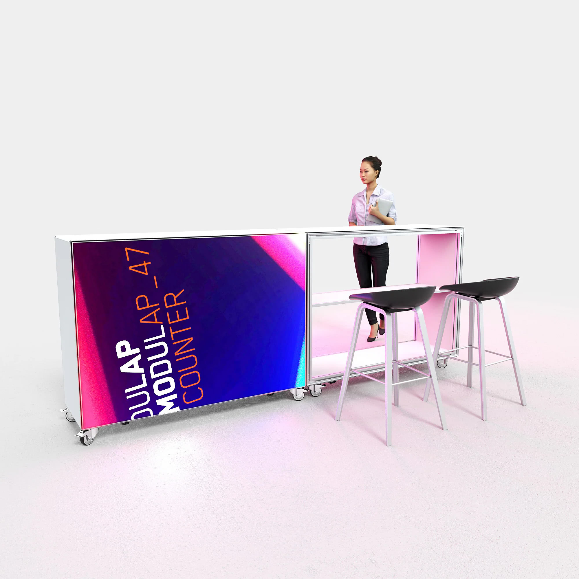 LED Messetheke mit Rollen B 142 x H 111 cm - MODULAP ONE