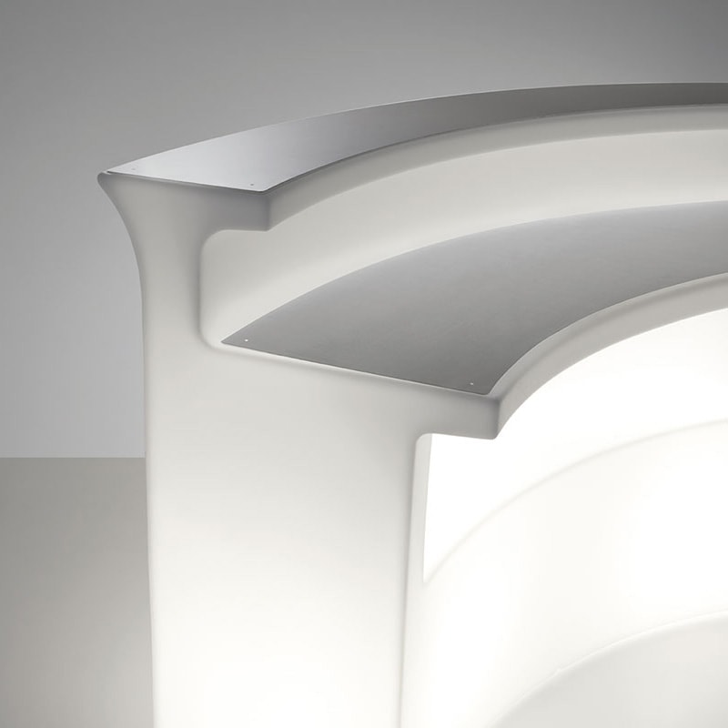 Beleuchtete Designer-Bar, gebogen, aus weiß-transluzentem Polyethylen