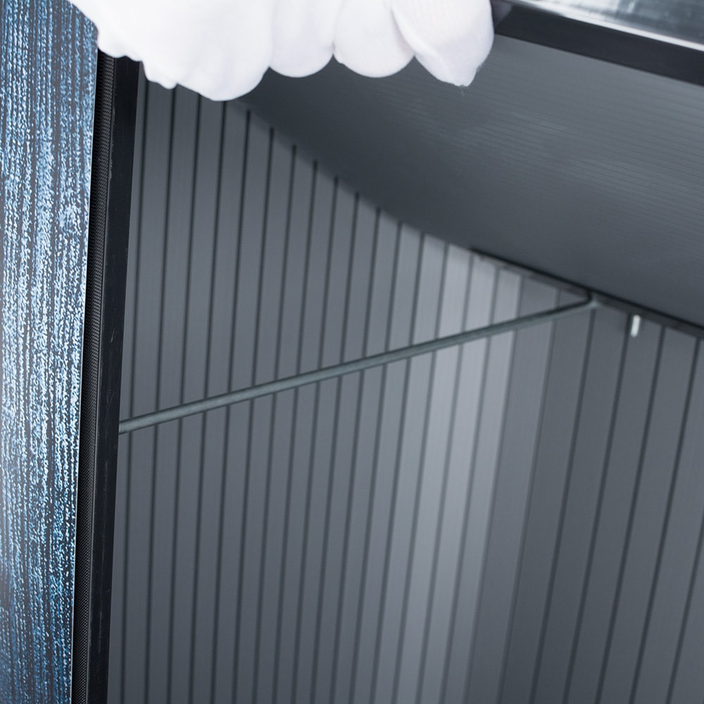 Stabile, rechteckige Lamellentheke in moderner Optik