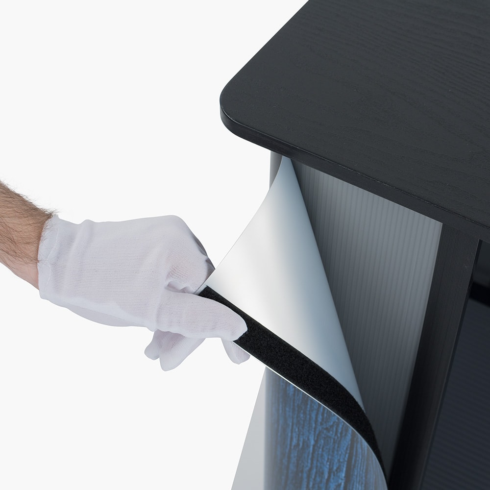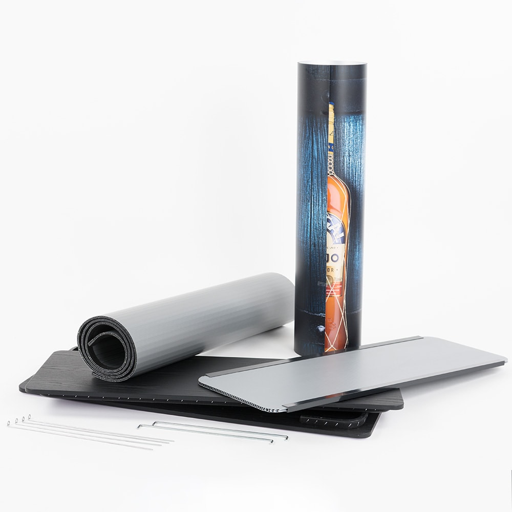 Diese stabile Werbetheke überzeugt durch einen einfachen Aufbau, eine hochwertige Optik und beste Qualität. Der ideale Begleiter für Ihre Messe, Event oder Promotion-Aktion.