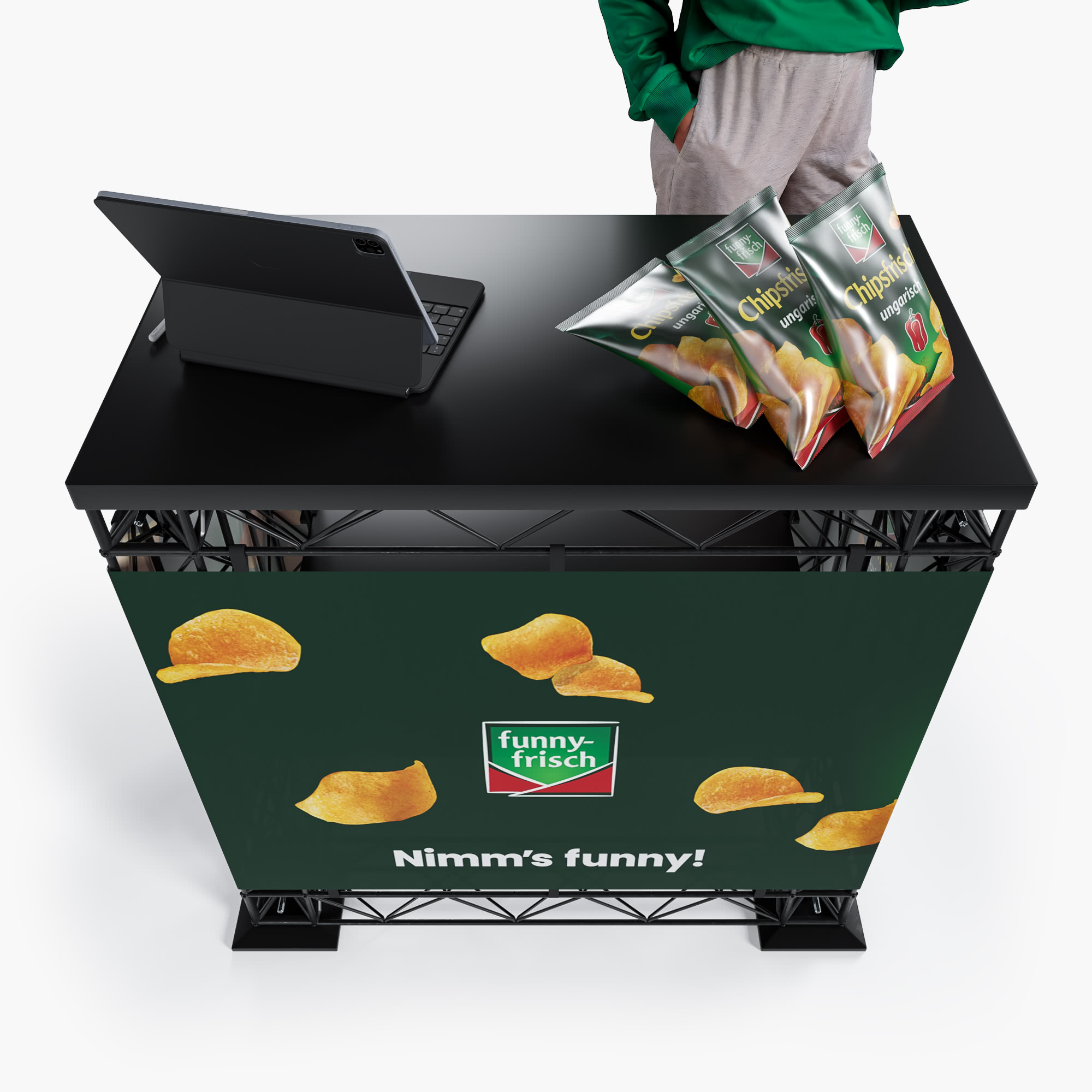 Diese stabile Werbetheke überzeugt durch einen einfachen Aufbau, eine hochwertige Optik und beste Qualität. Der ideale Begleiter für Ihre Messe, Event oder Promotion-Aktion.