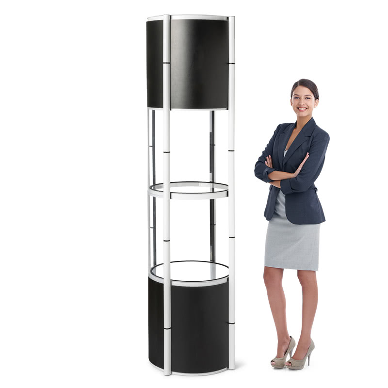 Faltbare Messevitrine / Werbesäule „Twister“ mit LED Beleuchtung