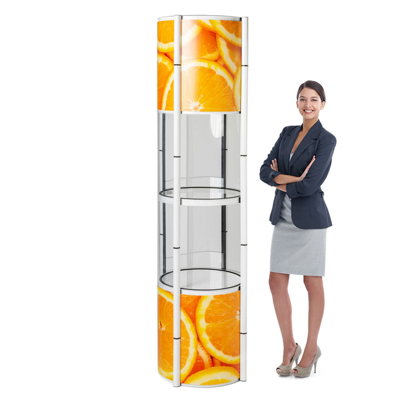 - Flexibel einsetzbar als Regal, Vitrine oder Werbesäule