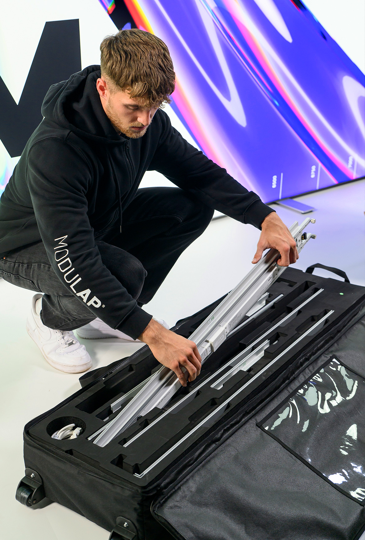 Vom stabilen Systemkarton über praktische Trolley Bags bis hin zum robusten Flight Case: Ein durchdachtes Verpackungskonzept für maximale Flexibilität. Sicher verstaut, komfortabel transportiert und jederzeit einsatzbereit.