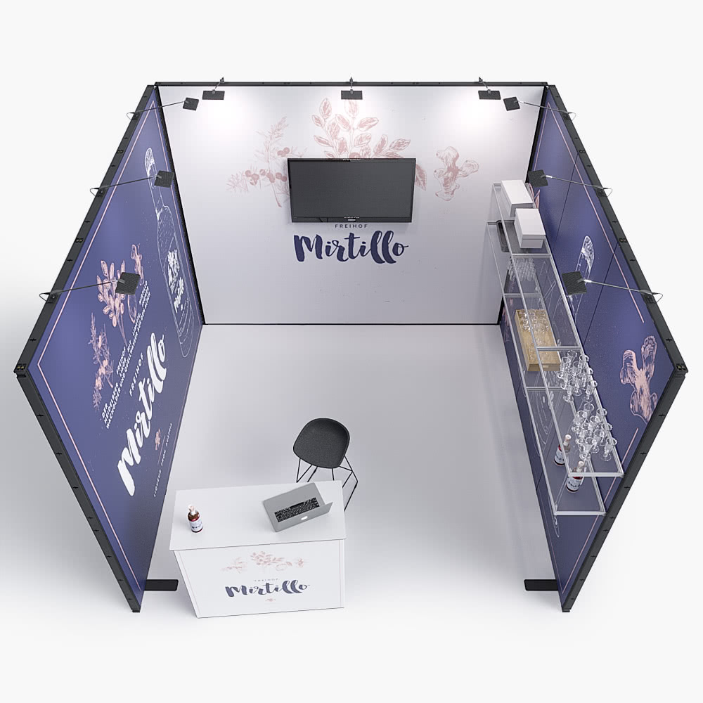 Messestand 3 x 3 m, bestehend aus 3 Messewänden (B 300 cm x H 250 cm)