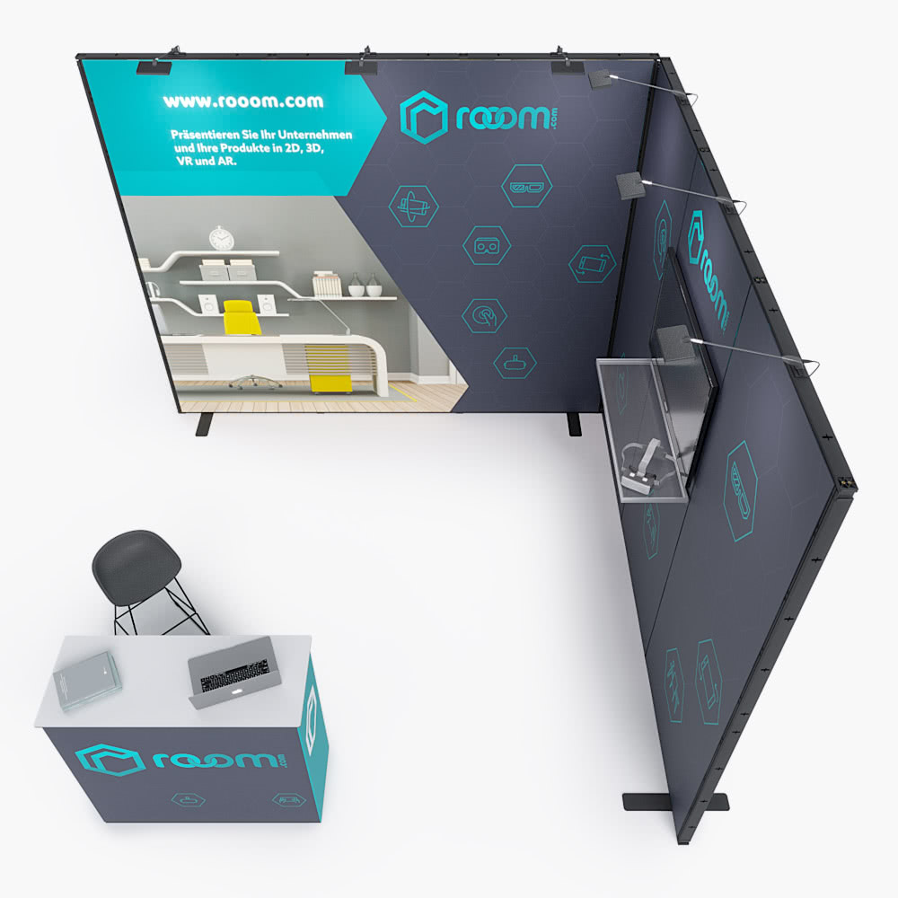 Messestand 3 x 3 m, bestehend aus 2 Messewänden (B 300 cm x H 250 cm)