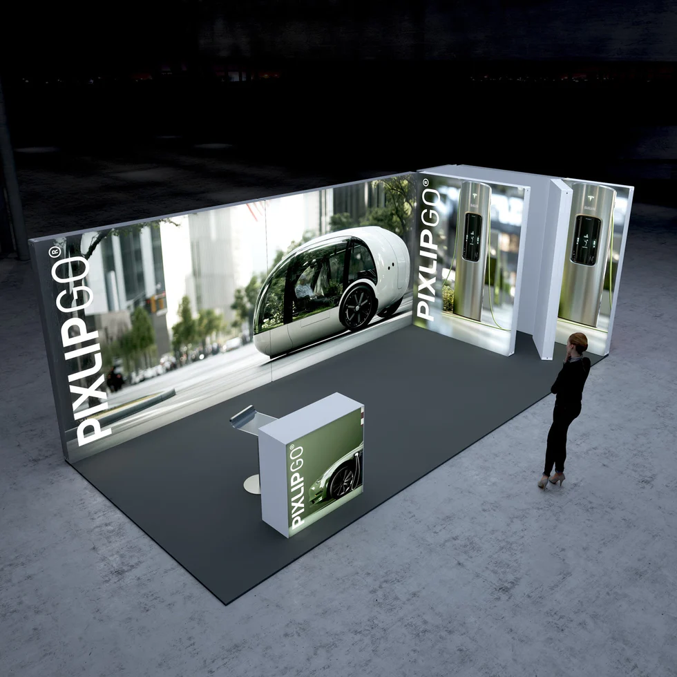 - Werkzeugfrei und schnell einsatzbereit – ideal für Messen, Roadshows oder Promotions