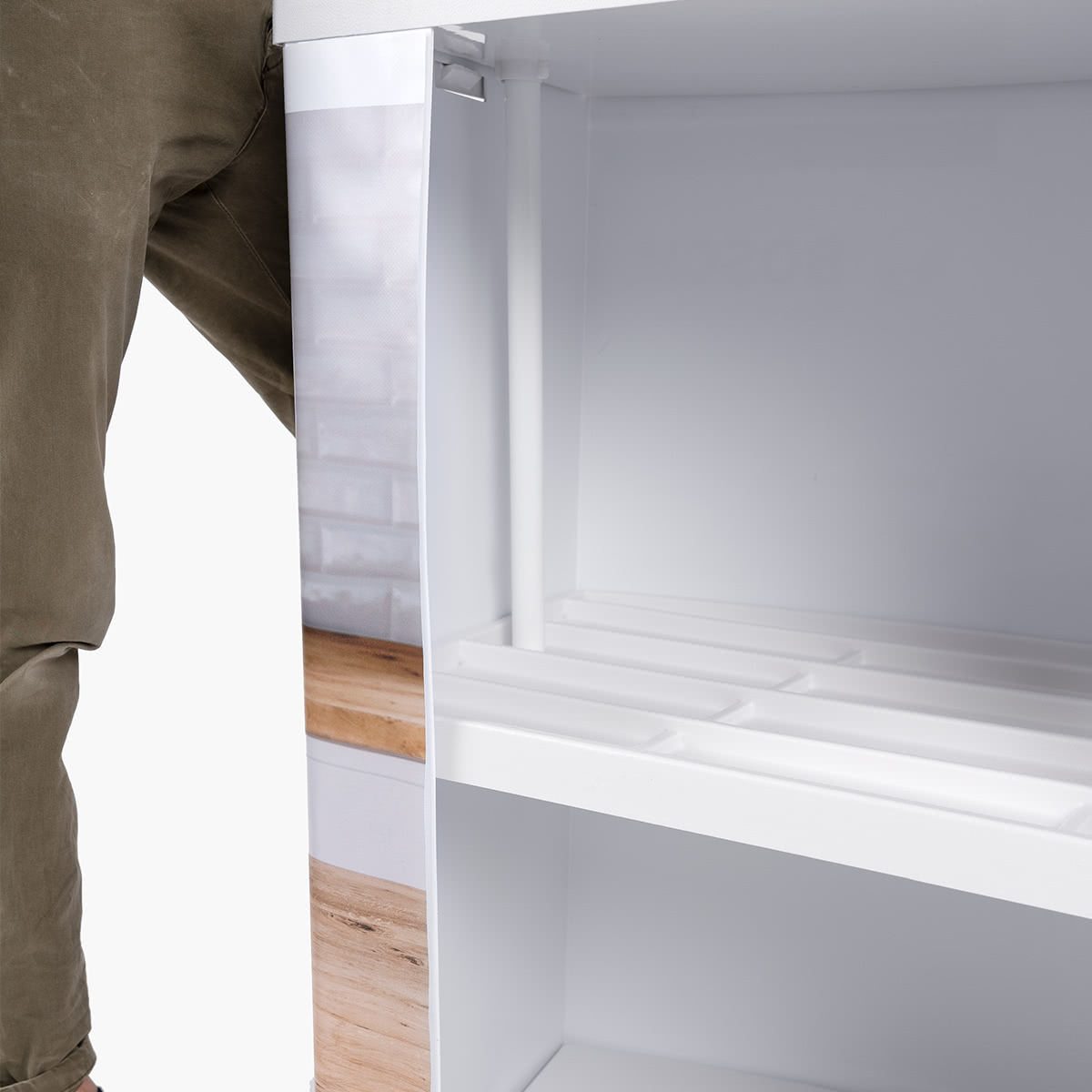 Preisgünstige Kunststoff-Falttheke in weißer Ausführung inkl. Topschild