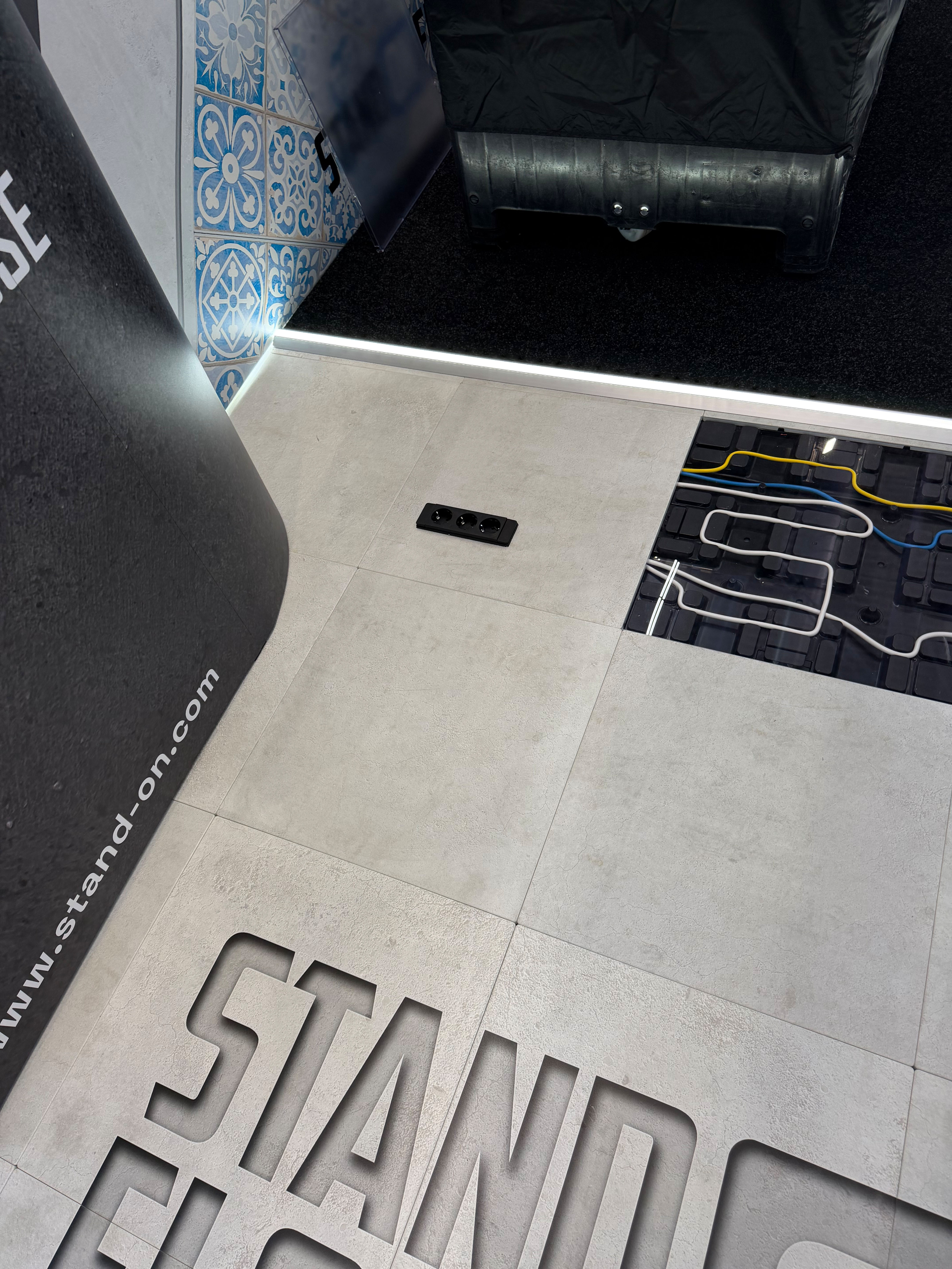 Auch im mobilen Einsatz überzeugt das System durch maximale Flexibilität. Der Messeboden ist leicht zu transportieren, schnell aufgebaut und robust genug für den häufigen Einsatz an wechselnden Standorten. Ob Roadshows, Pop-up-Stores, Promotion-Events oder Marken-Touren – der Stand-On Messeboden sorgt überall für einen einheitlich hochwertigen Auftritt.