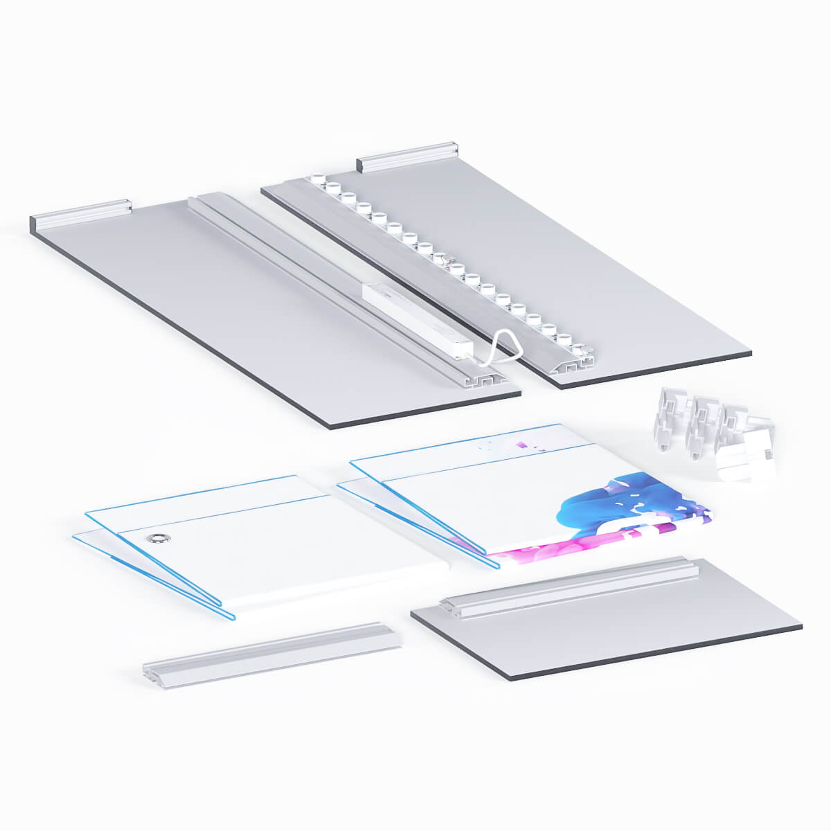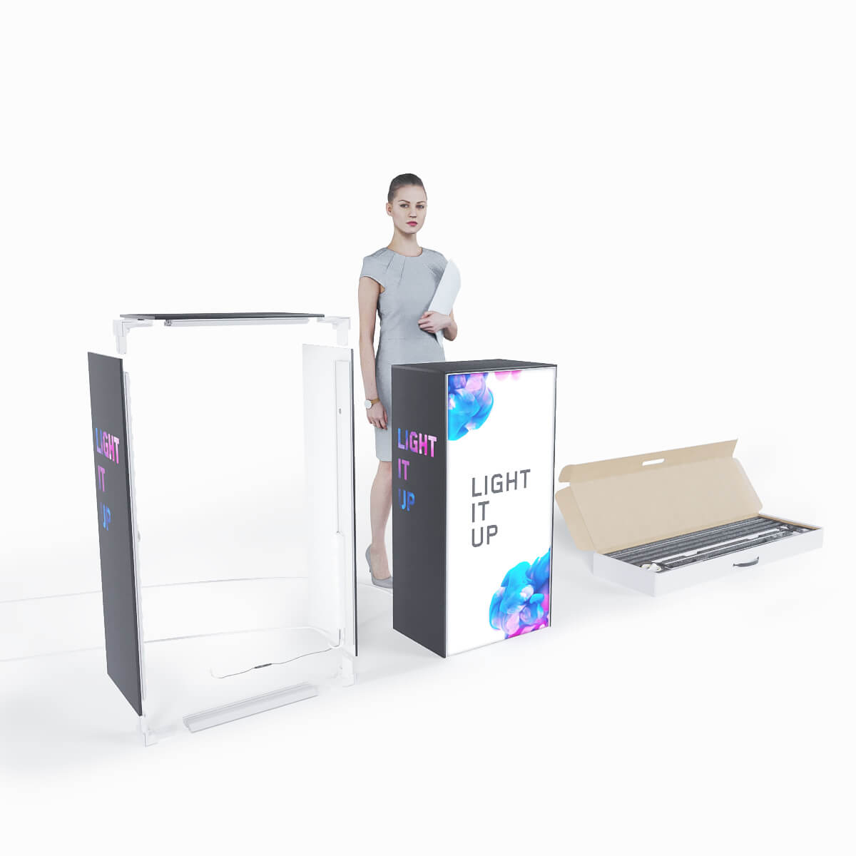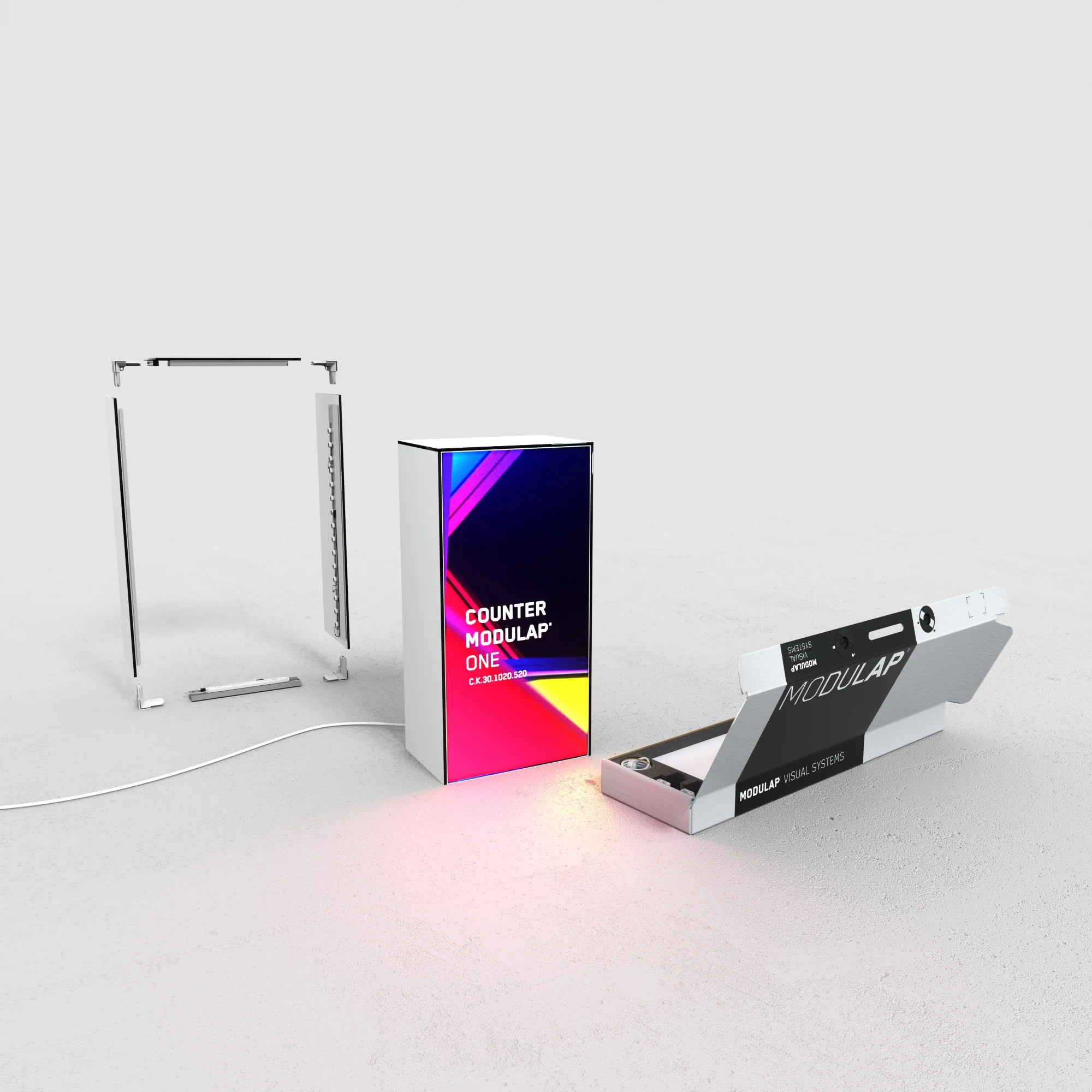 Das Thekensystem besteht aus Aluminiumprofilen mit integrierten LED Modulen, die für eine optimale Stabilität bei einem sehr leichten Gewicht sorgen. Die homogene und sehr helle Ausleuchtung sorgt für höchste Aufmerksamkeit auf Ihrer Messe oder Ihrem Event. Nach Ihrer Veranstaltung können Sie die einzelnen Module der LED Theke einfach wieder auseinanderbauen und in dem optional bestellbaren Transporttrolley verstauen.