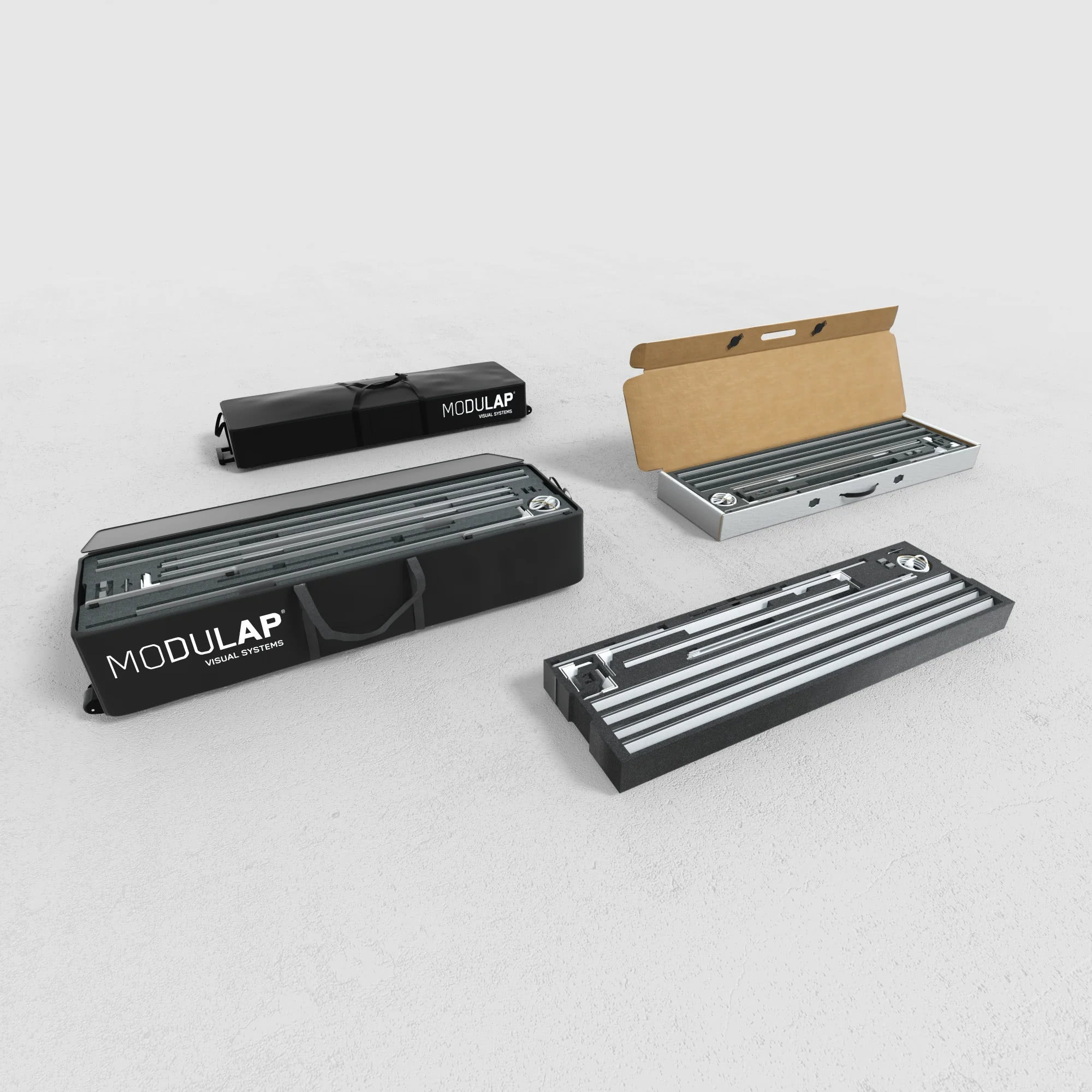 Für einen einfachen und sicheren Transport Ihrer LED One Messewände: Mit dem Transport-Trolley können Sie Ihren Messestand sehr komfortabel transportieren. Schaumstoff-Inlays (bei Kauf eines Rahmens oder einer Theke) sorgen für einen perfekten Schutz Ihrer Messestand-Module. Die Transporttasche ist in 2 Größen (für 1 oder 2 Inlays übereinander, 2 Kartonagen bedeuten, 1 Trolley) erhältlich. Durch die kompakte Größe können Sie Ihren Messestand auch in einem Kombi oder Van transportieren.