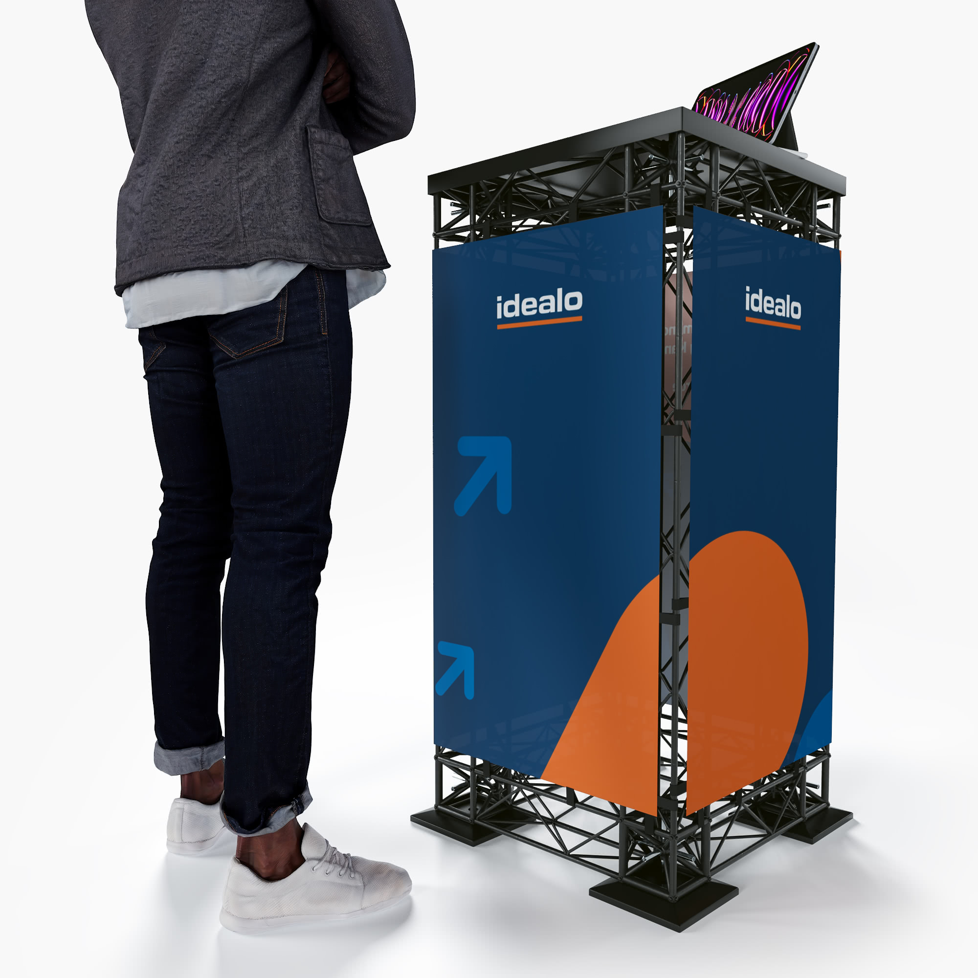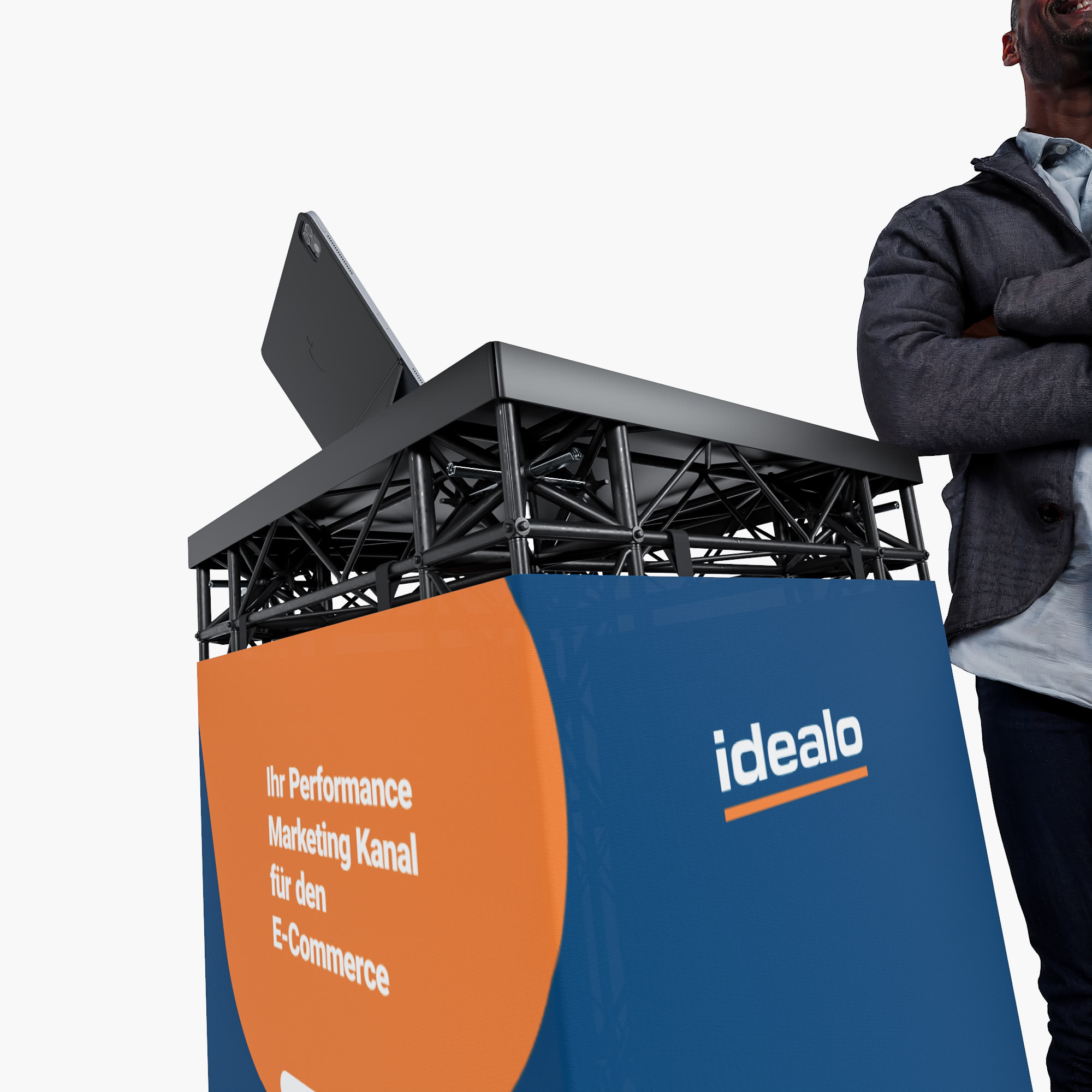 Diese stabile Stehtheke überzeugt durch einen einfachen Aufbau, eine hochwertige Optik und beste Qualität. Der ideale Begleiter für Ihre Messe, Event oder Promotion-Aktion.