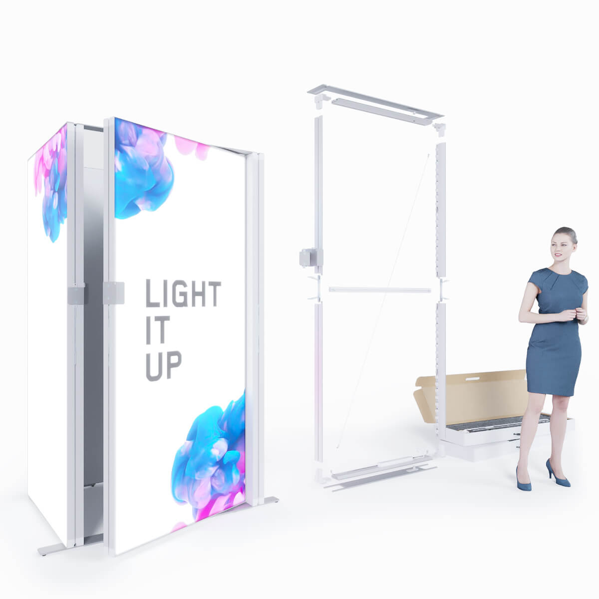 Mit diesem System bieten wir eine kostengünstige Alternative zum Individualbau. Optimal für Einsteiger und perfekt für Messe Promotion und Event. Das innovative LED One System bietet zahlreiche Möglichkeiten: Ob beleuchtete Messewand, Messestand oder Messetheke – die LED One Elemente eignen sich in jedem Fall ideal für den mobilen Einsatz bei Messen, Promotions und Events.