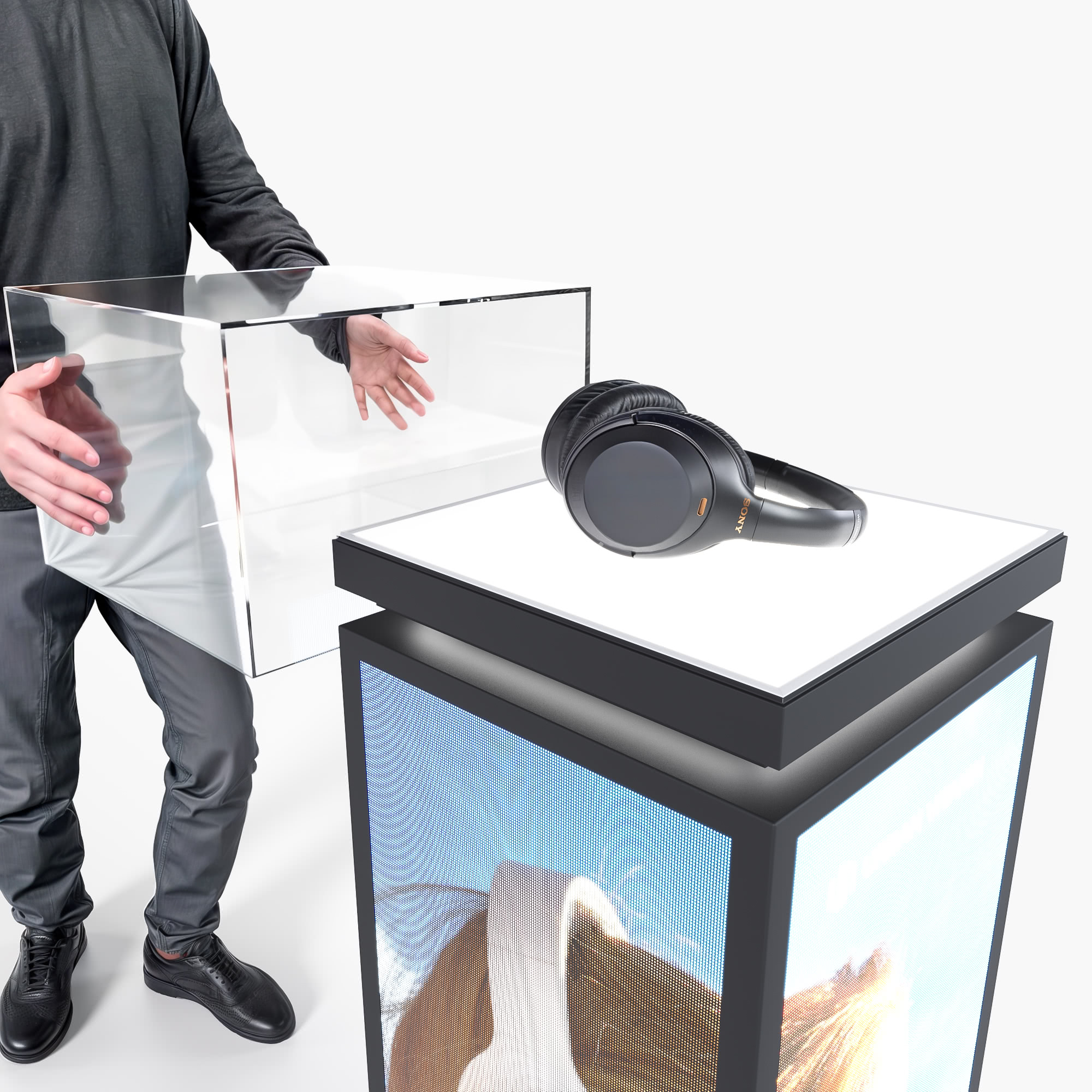 - Mobile Videowall Vitrine mit Acyrlglas-Kubus (beleuchtet)