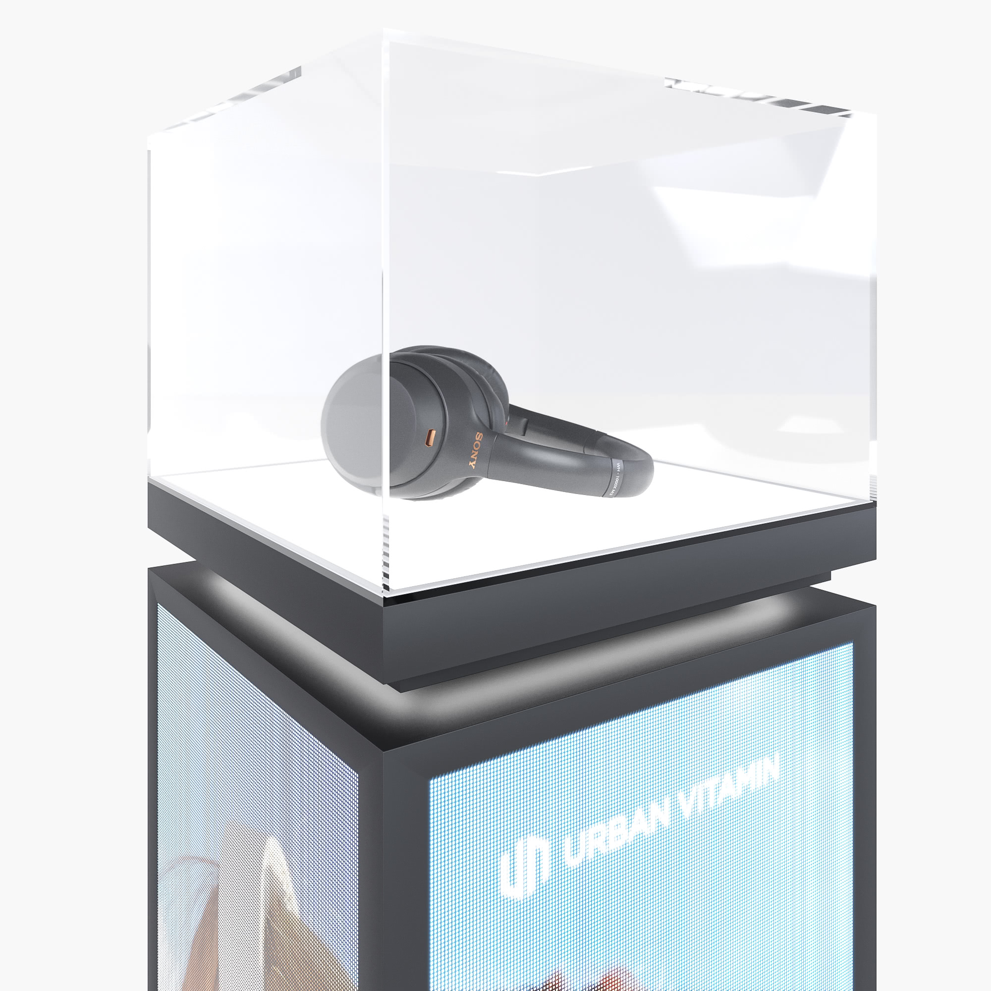 - Integrierter Acrylglaskubus zur Produktpräsentation (LED beleuchtet)