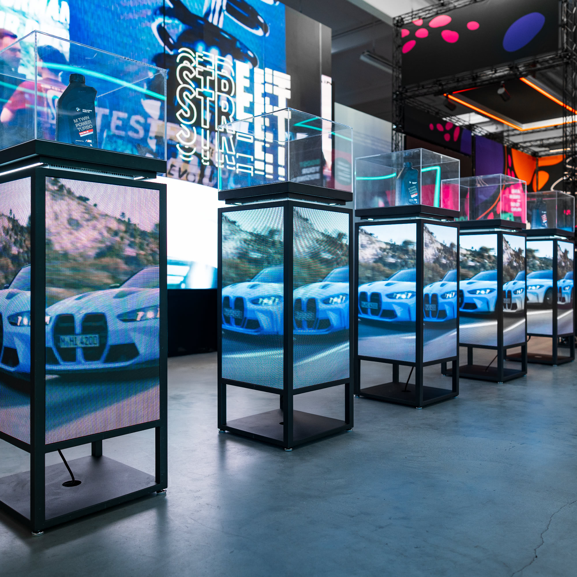 Entdecke unsere LED Videowall Vitrine mit brillantem 2 mm Pixelpitch! Diese smarte Lösung vereint Warenpräsenter, elegante Produktvitrine und praktischen Stehtisch in einem modernen Showcase. Ein besonderes Highlight ist der hochwertige Acrylglaskubus-Aufsatz mit integrierter LED-Beleuchtung – ideal, um deine Produkte stilvoll und sichtbar in Szene zu setzen. Präsentiere deine Inhalte dynamisch, ziehe alle Blicke auf dich und schaffe ein unvergessliches Markenerlebnis – perfekt für Shops, Boutiquen, Events und Messen. Mit diesem LED Showcase hebst du deine Präsentation auf das nächste Level.