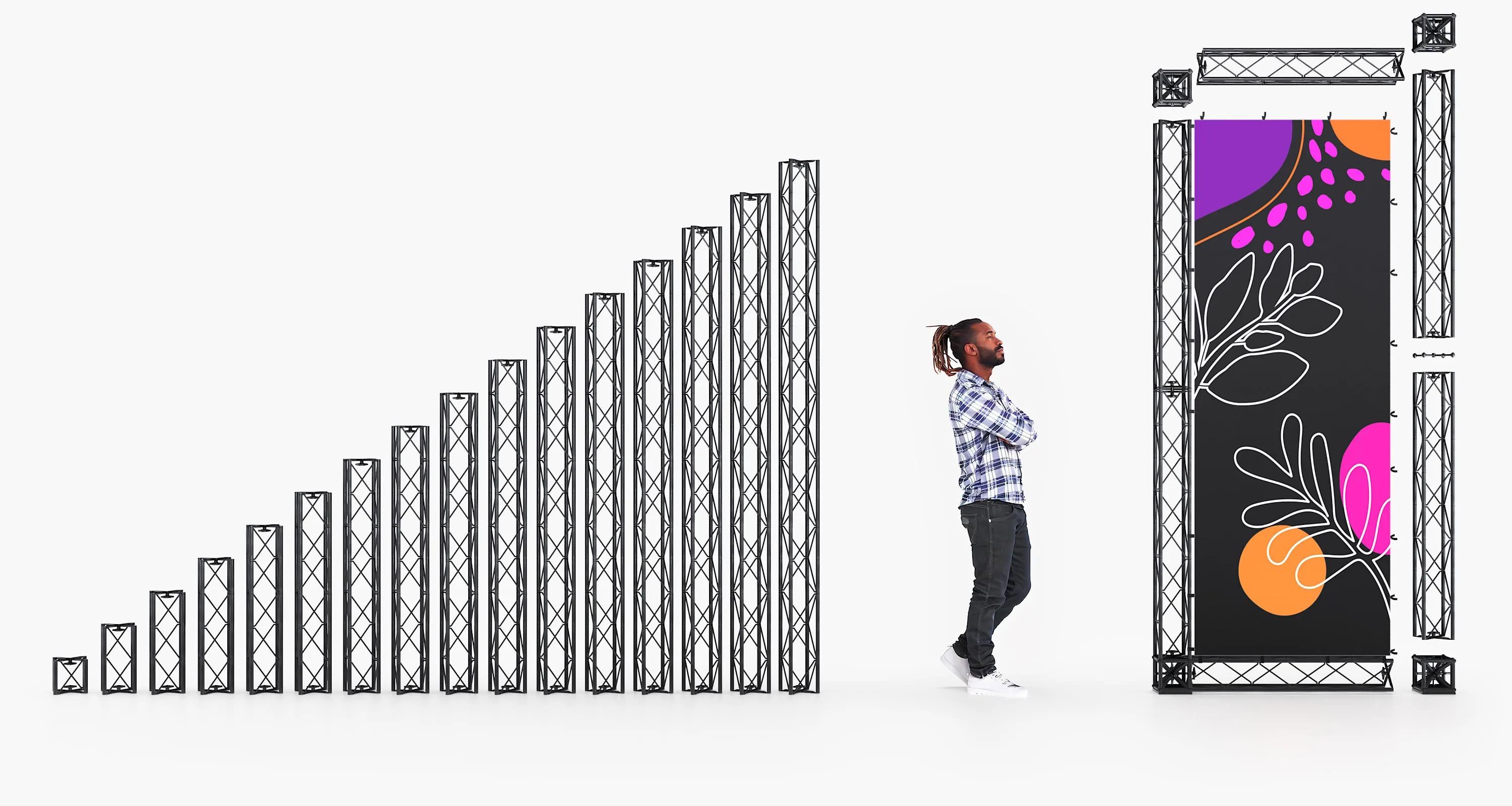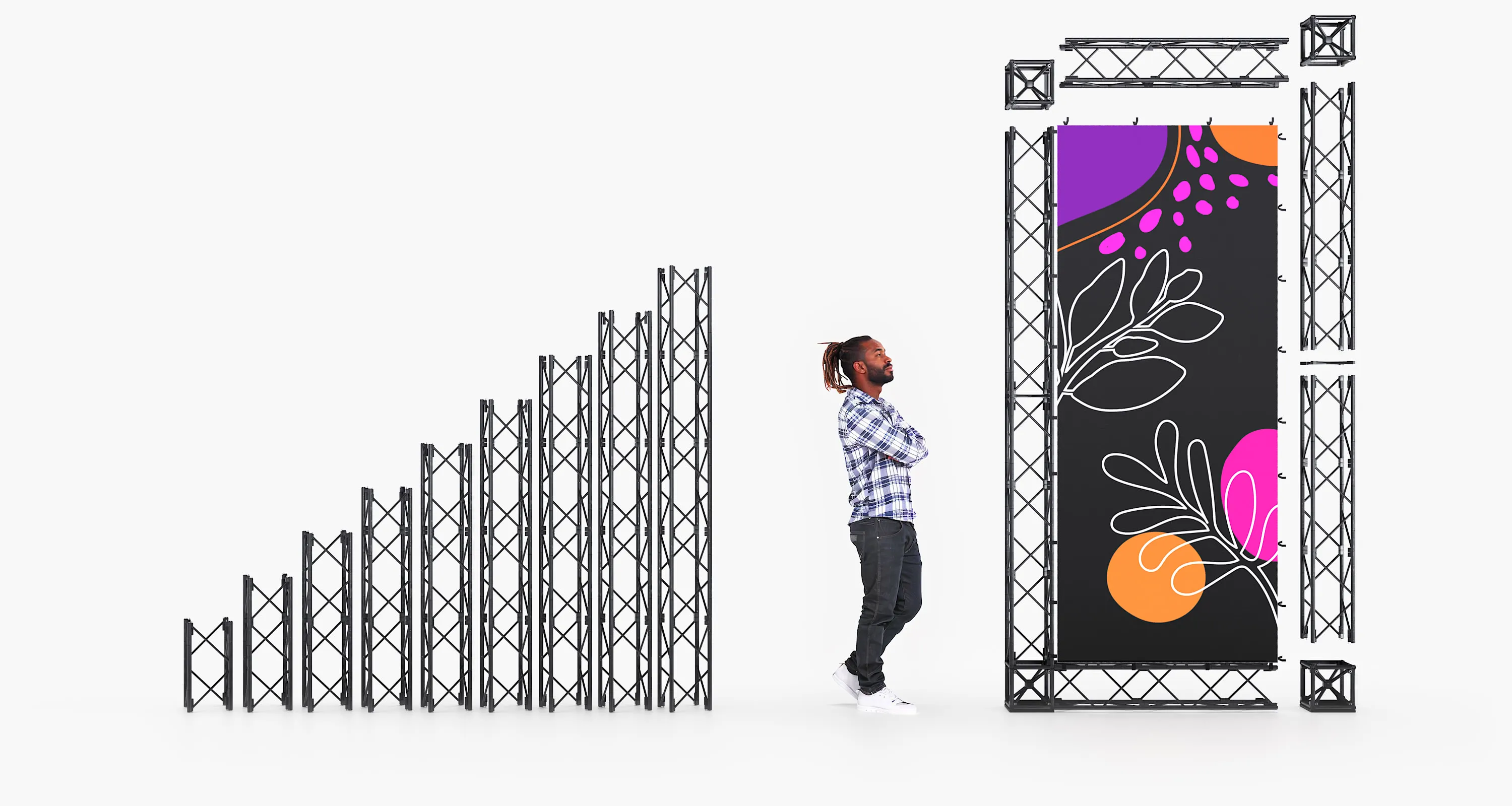 Mit dem modularen XTRUSS System gestaltest du deinen Messestand so flexibel wie nie zuvor. Die leichte Aluminium-Traverse lässt sich werkzeuglos aufbauen, beliebig erweitern und passt sich jeder Standfläche an – ideal für Unternehmen, die Wert auf professionelle Präsenz und maximale Anpassungsfähigkeit legen.