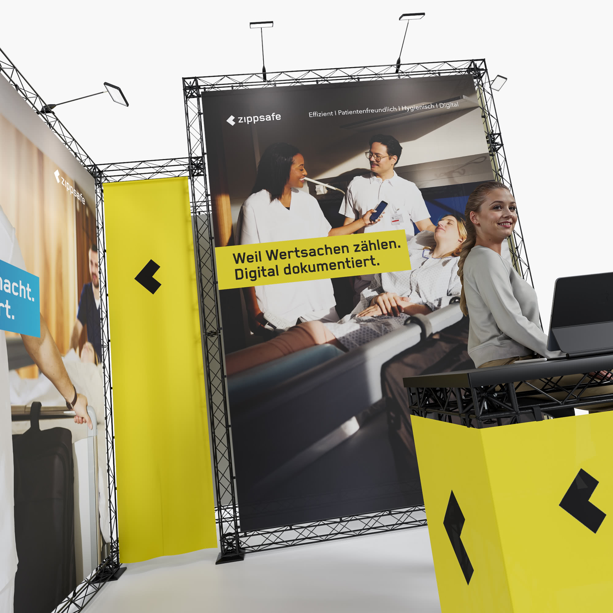 - Brillanter, 6-farbiger Druck auf Messewänden inklusive