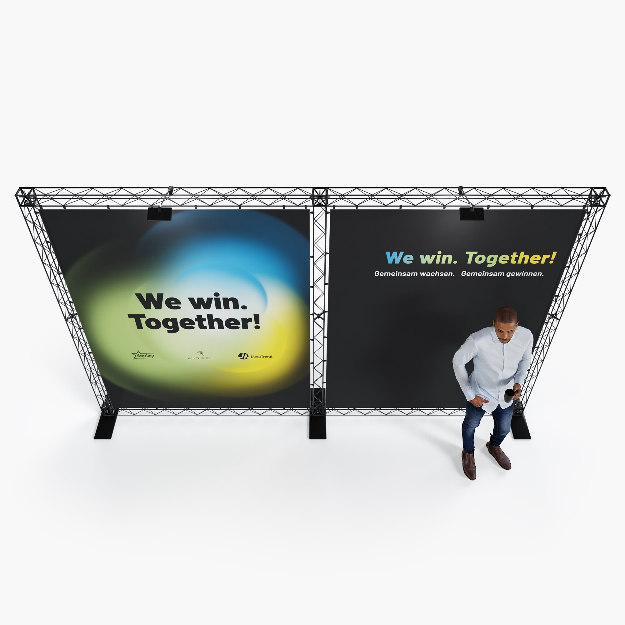 Mit einem Traversen-Messestand – auch Messetraverse genannt – sicherst du dir die perfekte Grundlage für einen erfolgreichen Auftritt auf Messen und Events. Das moderne Design und der einfache, werkzeuglose Aufbau werden dich überzeugen!
