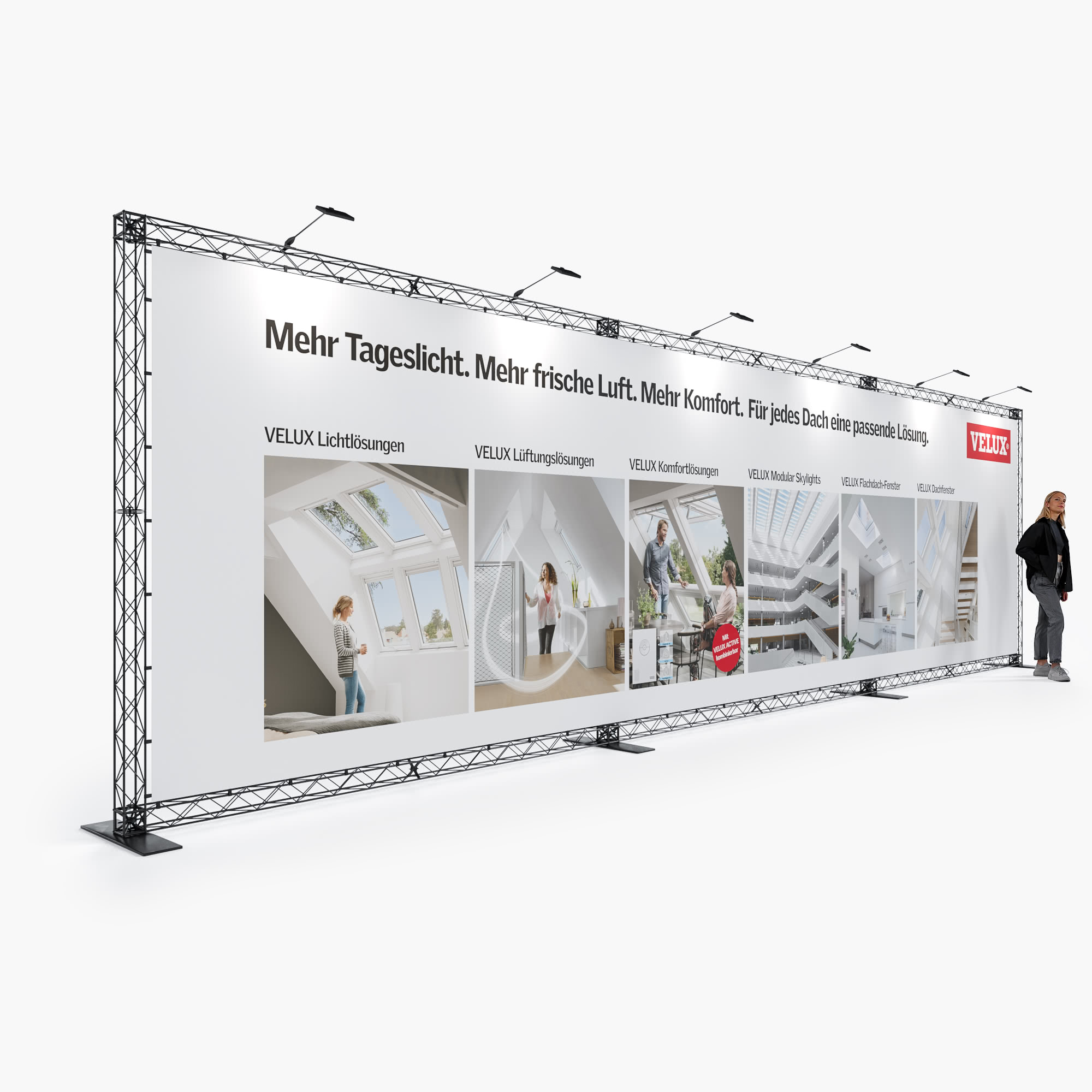 Mit einem Traversen-Messestand – auch Messetraverse genannt – sicherst du dir die perfekte Grundlage für einen erfolgreichen Auftritt auf Messen und Events. Das moderne Design und der einfache, werkzeuglose Aufbau werden dich überzeugen!
